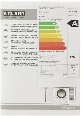 Стиральная машина ATLANT - надежный помощник в быту, который сочетает в себе высокую производительность и энергоэффективность. Одно из главных преимуществ этой модели - класс энергоэффективности A+, что означает экономию электроэнергии и вашего времени.
