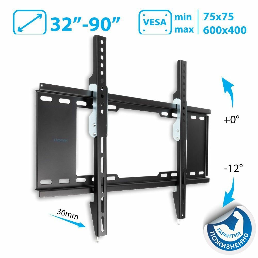 Настенное крепление для телевизоров с диагональю от 32" до 90" и весом не более 40 кг