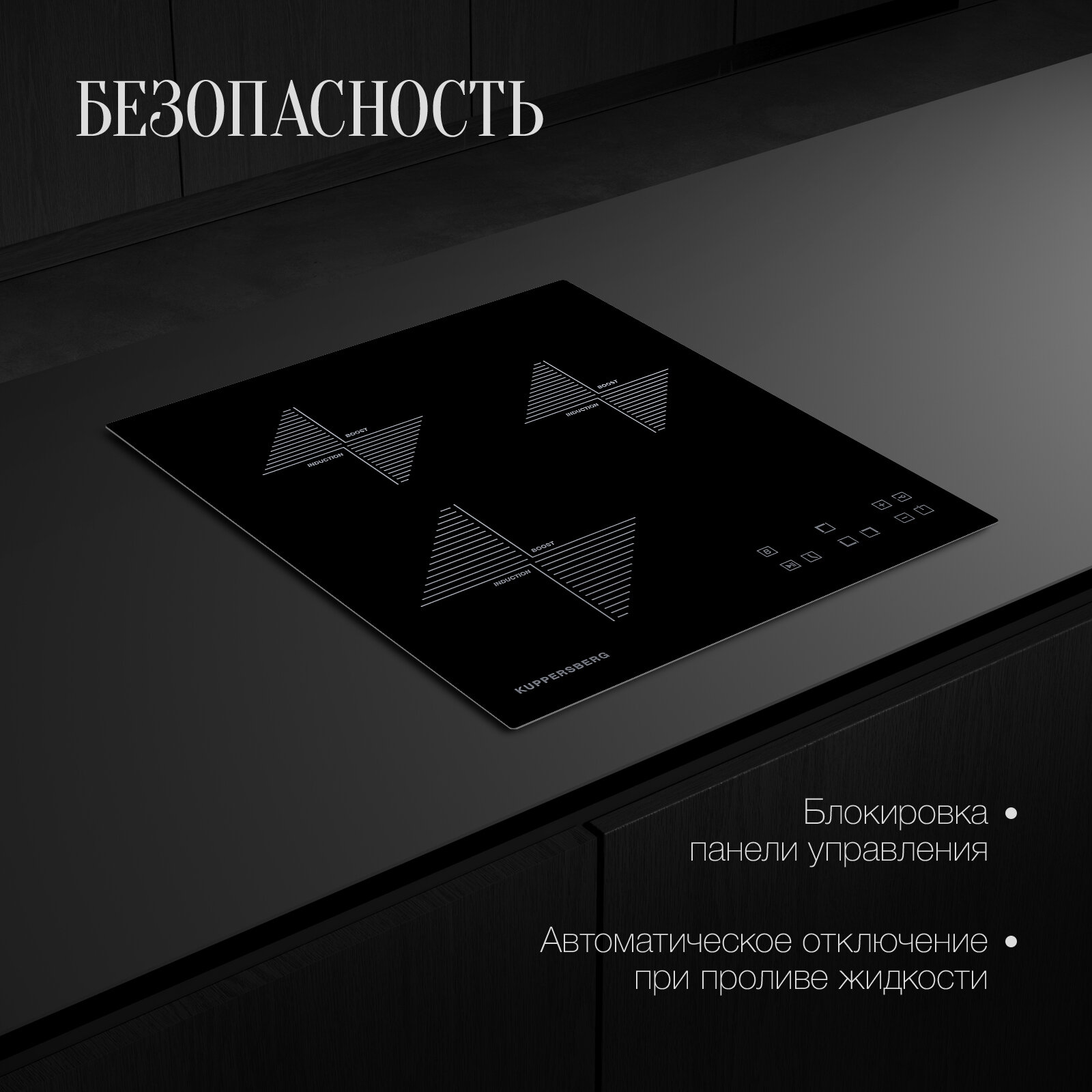 Индукционная варочная панель , изготовленная из прочной стеклокерамики – настоящая жемчужина любого кухонного интерьера. Помимо стильного вида, это электронное чудо техники удивит такими полезными свойствами: 3 конфорки с функцией Booster, обеспечивающей моментальный нагрев; 9 уровней мощности; 4 цифровых дисплея; режим срочного отключения и возобновления работы «Stop and Go»; блокировка поверхности; автоматическое выключение; таймер; индикатор остаточного тепла.