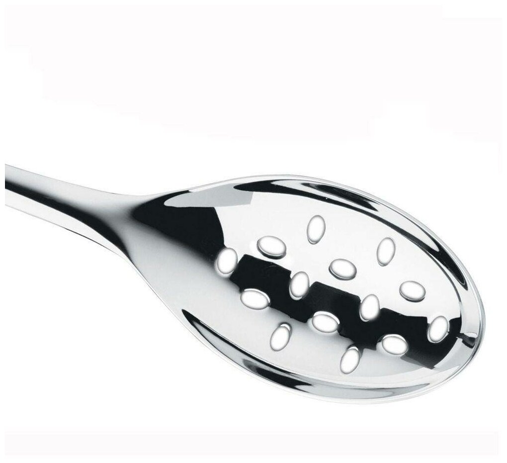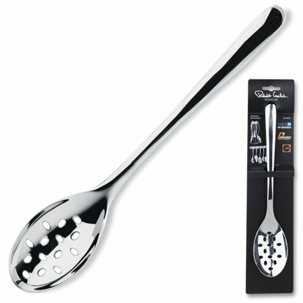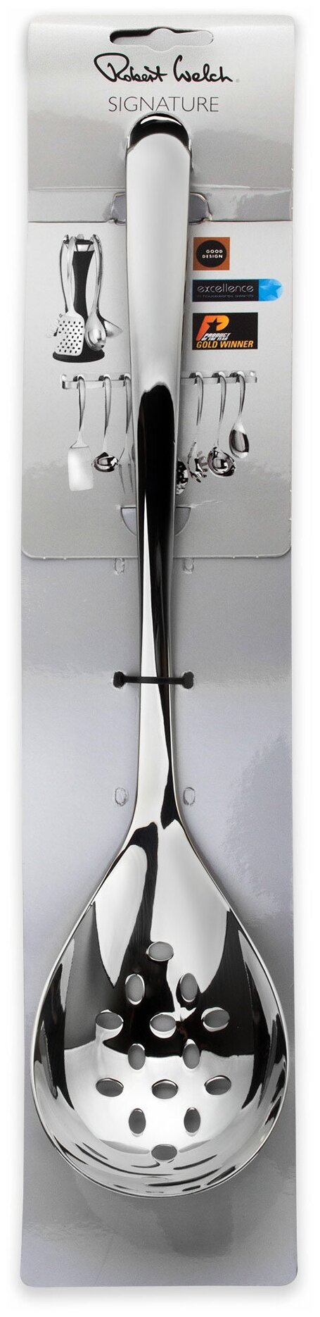 Сервировочная ложка с отверстиями из серии Signature идеально подходит как для подвесного набора, так и для сервировки стола. Цельнолитые изделия из нержавеющей стали элегантны, отполированы до зеркального блеска и прекрасно смотрятся в качестве сервировочных предметов на обеденном столе. Мягкий изогнутый "крючок" позволяет подвешивать ложку Signature, а также создает устойчивую точку соприкосновения, когда ее кладут на поверхность.
