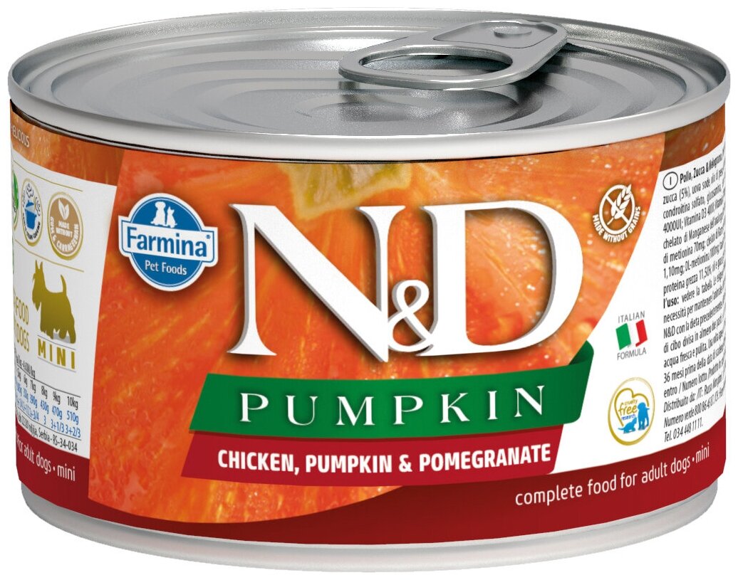 Влажный корм для собак Farmina N & D Chicken Pumpkin & Pomegranate Mini с курицей гранатом и тыквой для маленьких пород 014 кг