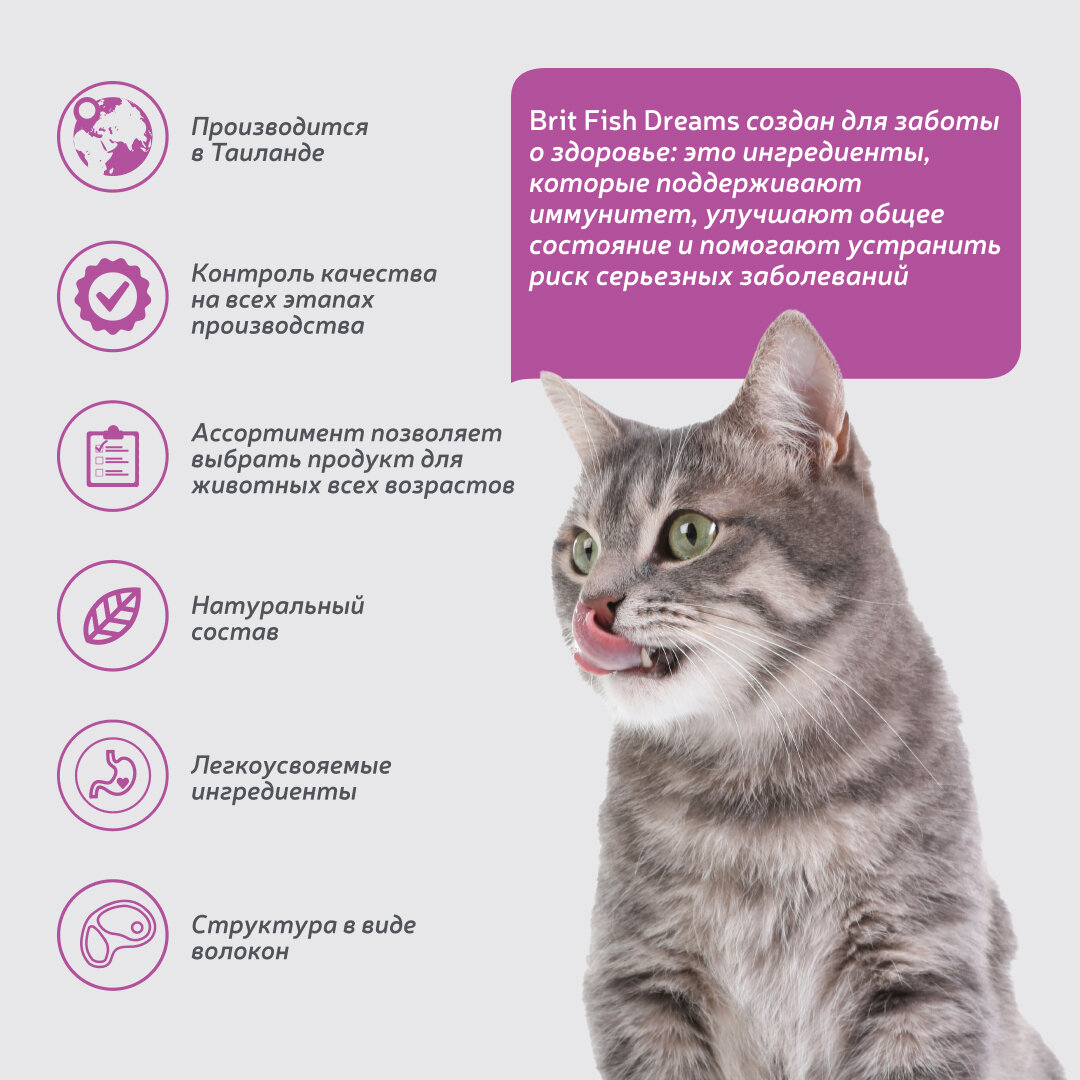 Brit Fish Dreams – сбалансированное питание для Вашей кошки. В состав корма входит куриное филе и креветки в соусе для отличного здоровья, самочувствия и красоты Вашего любимца.