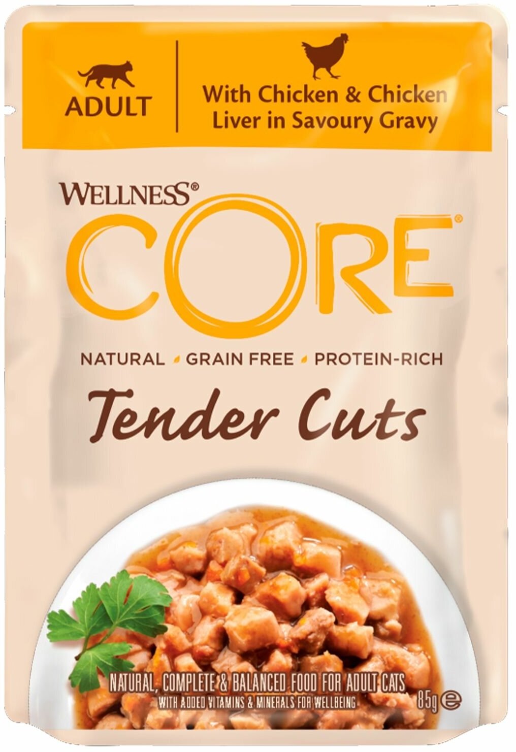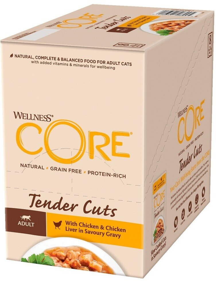 Влажный корм для кошек Wellness Core Tender Cuts Нежные Кусочки Курицы и Куриной Печени в Пикантном Соусе 0085 кг