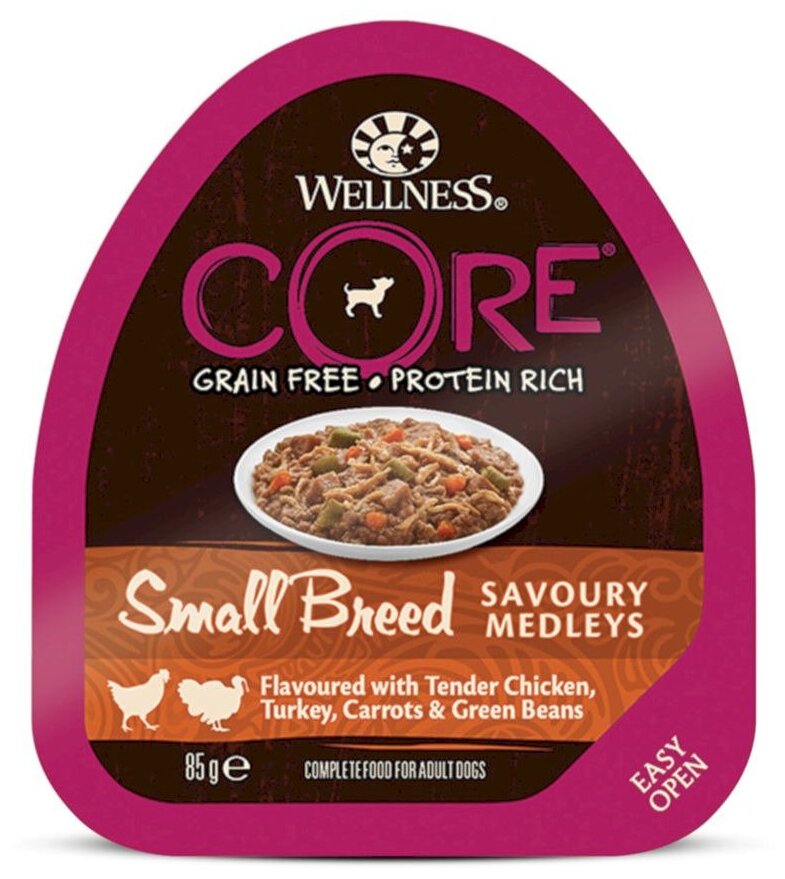 Влажный корм для собак Wellness Core Small Breed Аппетитное Попурри Из Нежного Куриного Филе с Индейкой Морковью и Зеленой Фасолью 0085 кг