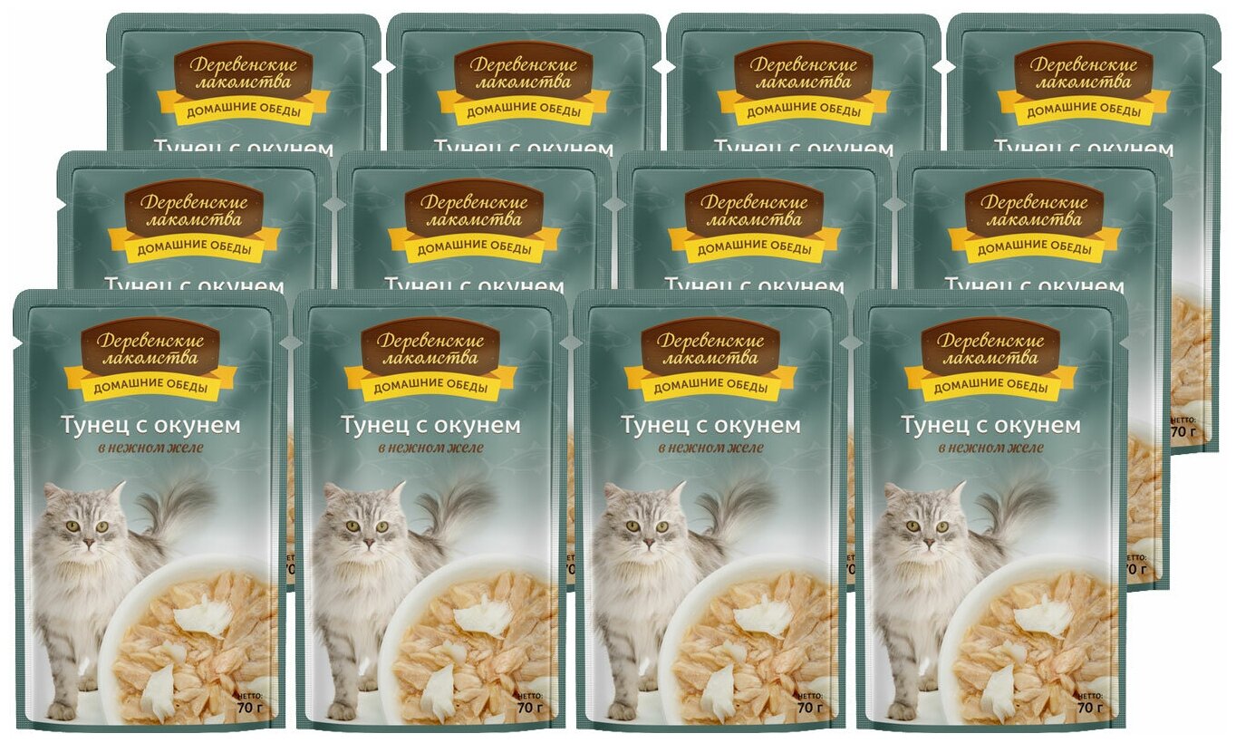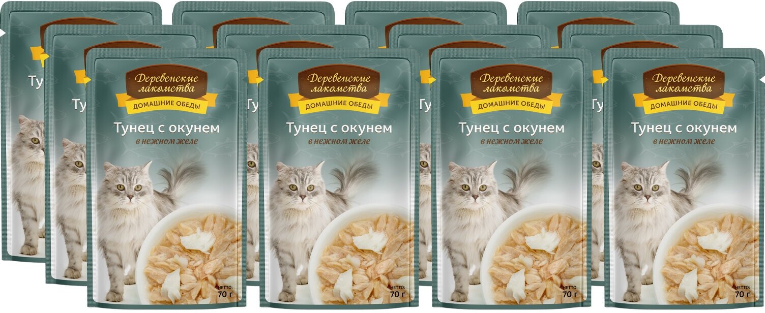 Влажный корм для кошек Деревенские Лакомства Тунец с окунем в нежном желе 007 кг