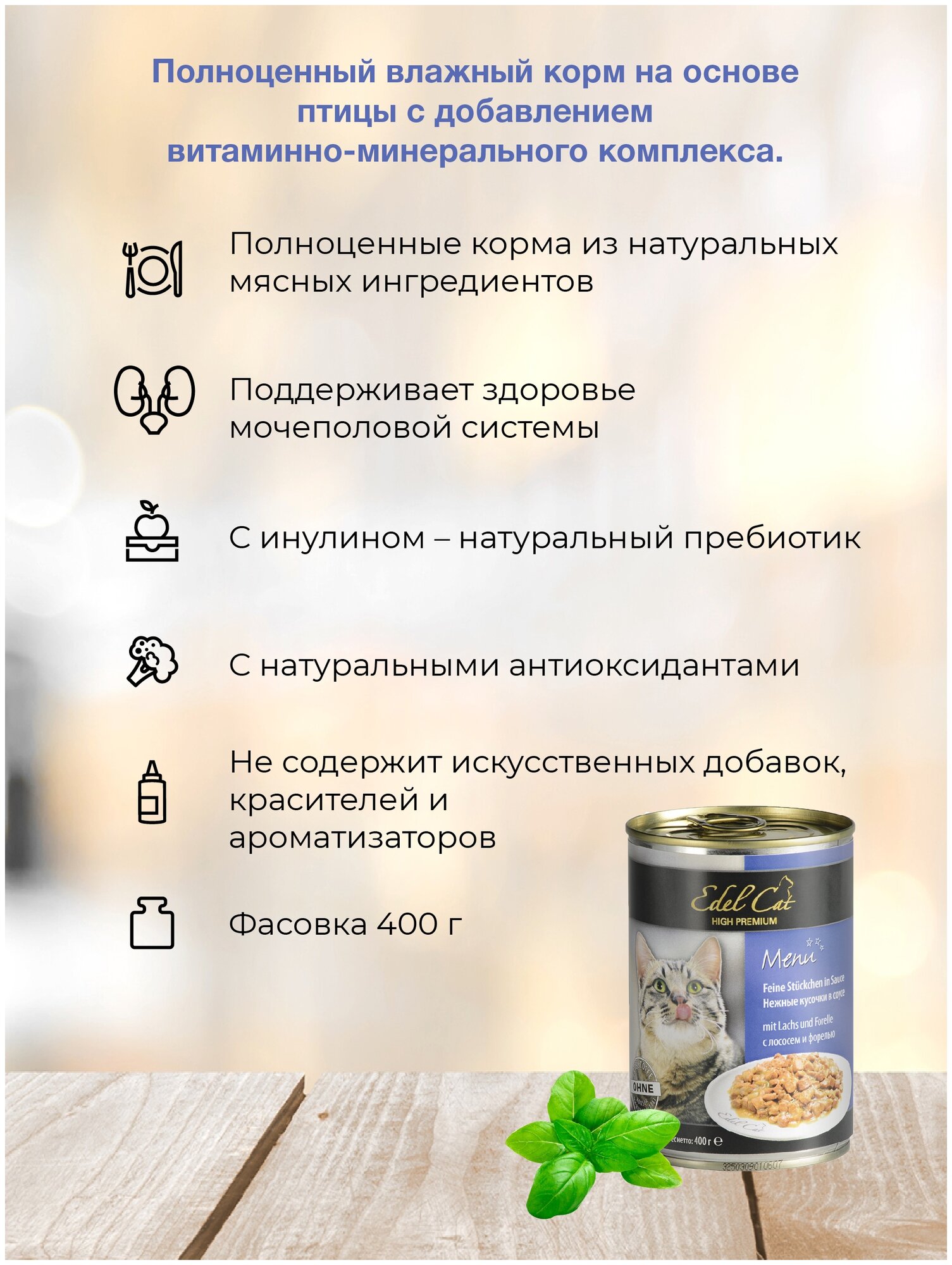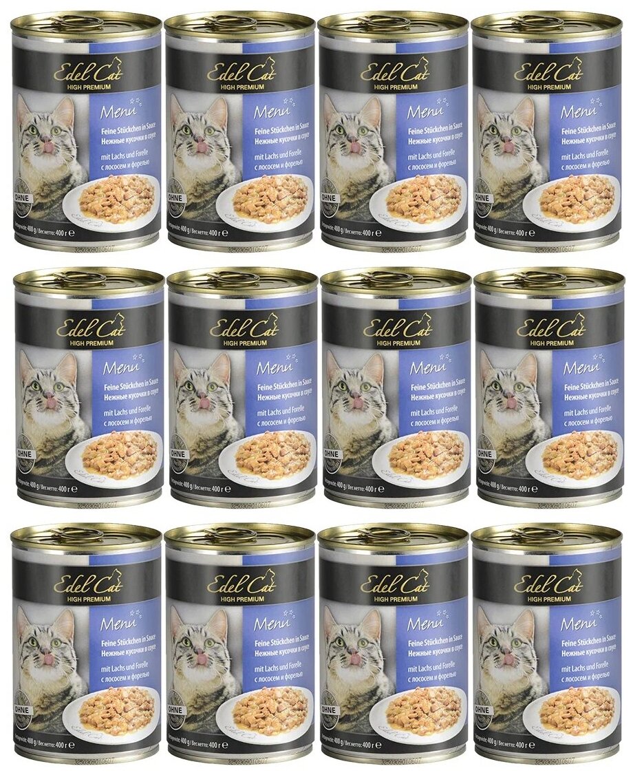 Влажный корм для кошек Edel Cat нежные кусочки в соусе с лососем и форелью 04 кг лосось, форель 400 г