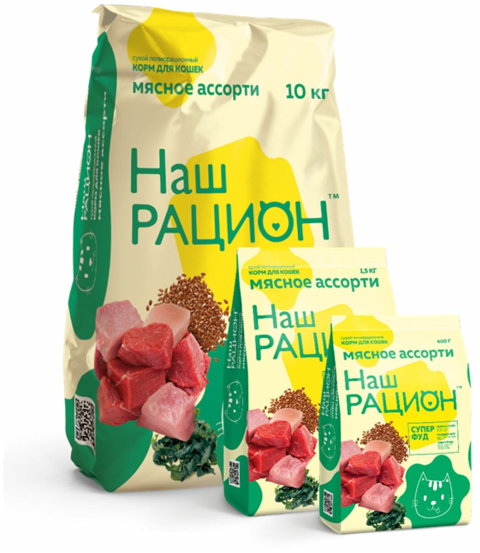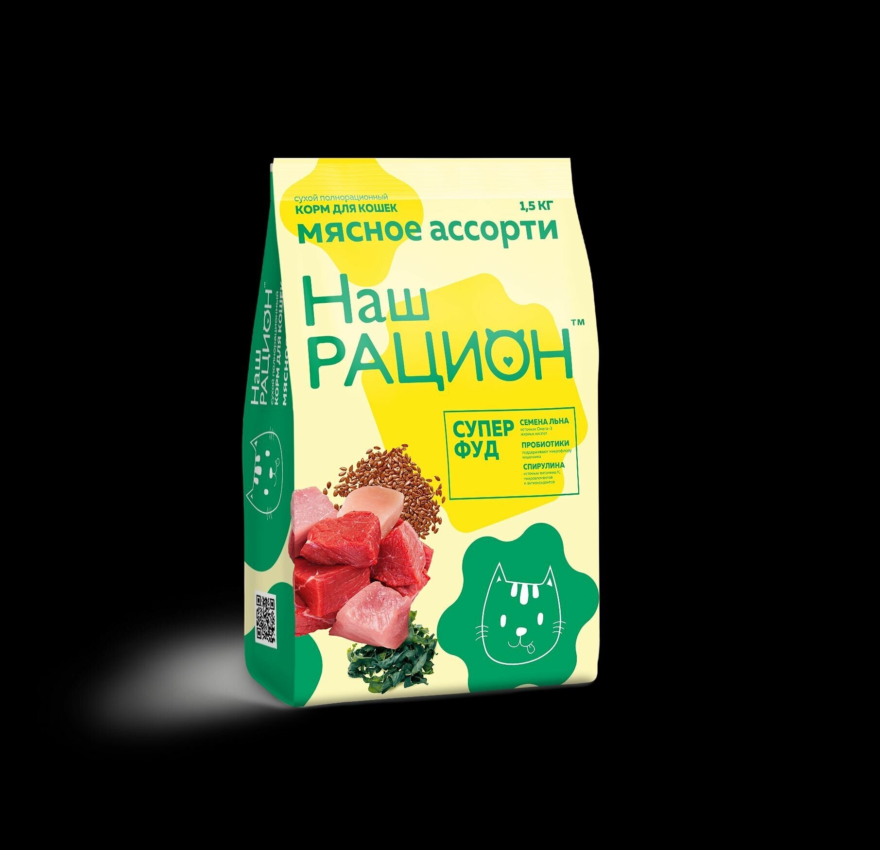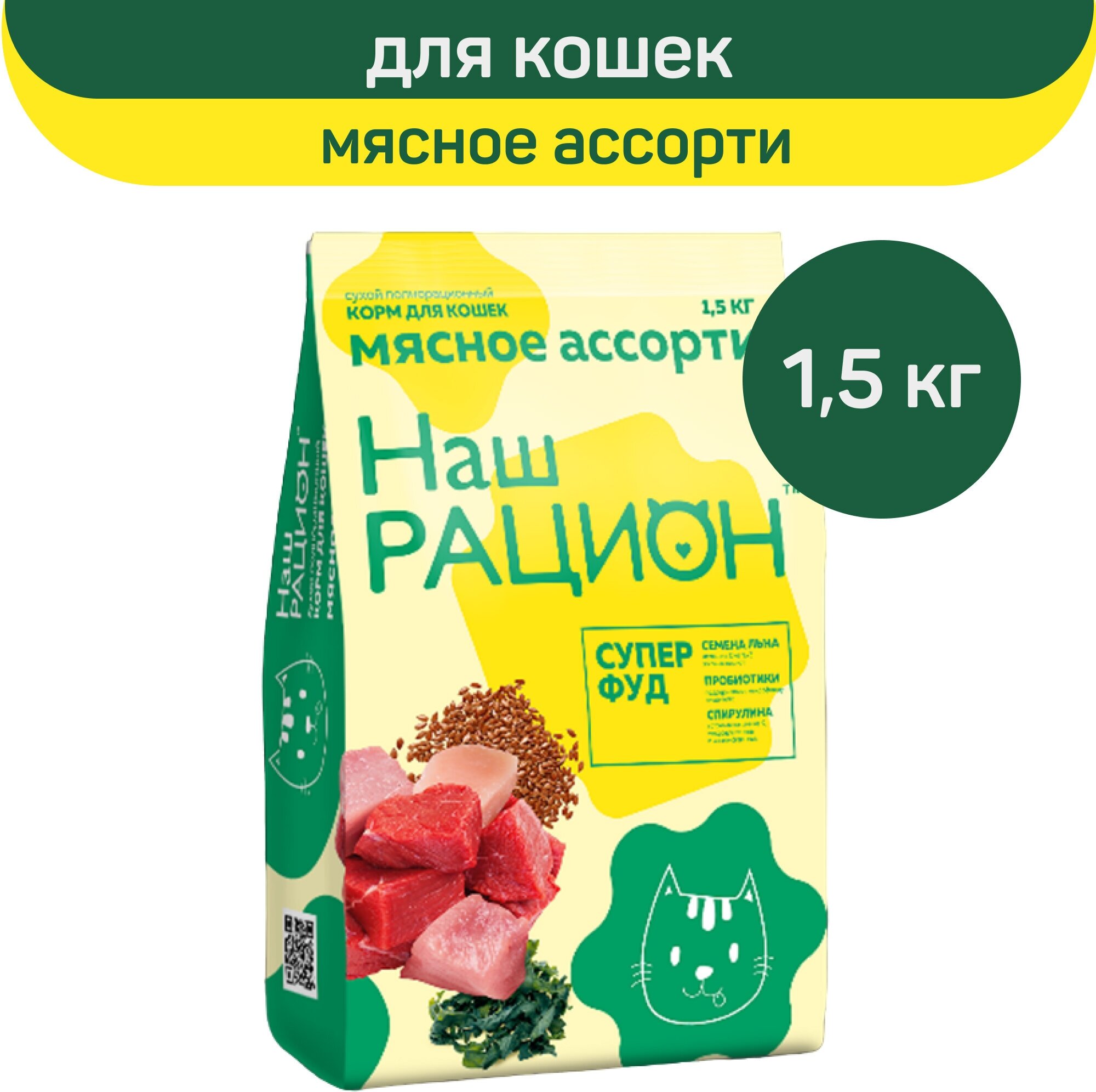 Сухой корм для кошек Наш Рацион Мясное ассорти 15 кг мясо 1,5 кг