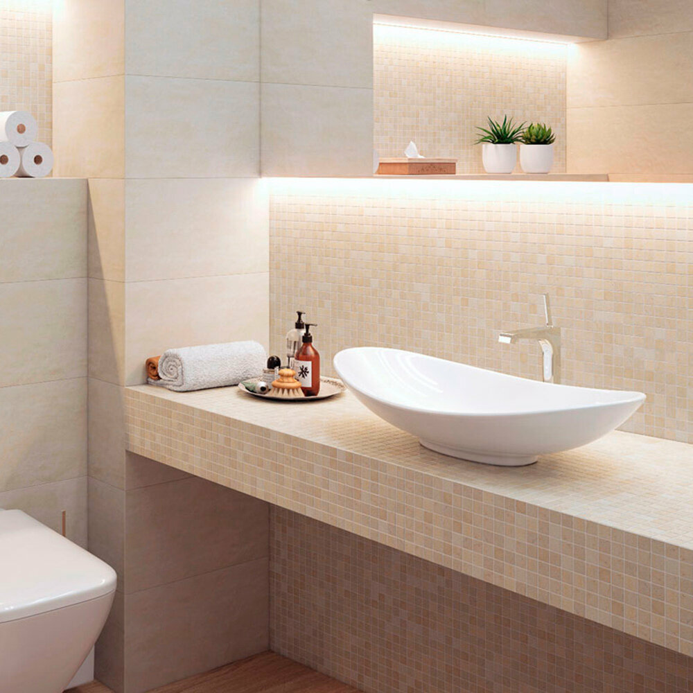 Мозаика бренда StarMosaic из натурального мрамора в теплых кремовых оттенках с тонкими серыми прожилками и гладкой матовой поверхностью. Она подойдет для оформления элементов ванных комнат, для пола душевых, столешниц, кухонных фартуков, стен и полов любых интерьеров. Это практичный, экологичный и гигиеничный материал, отличающийся поразительной долговечностью. Использование мраморной мозаики в интерьере становится вкладом на века, но придется соблюдать условия эксплуатации. Все-таки натуральный камень достаточно хрупок, требует аккуратности в обращении, специального ухода. Мозаика поставляется на пвх сетке.