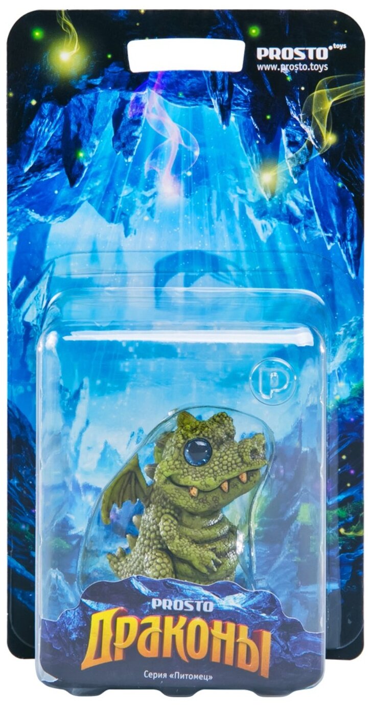 Дракончик Кро с зеленой имитацией кожи и бирюзовыми блестящими глазами. У фигурки есть маленькие крылышки и короткий забавный хвостик. Высота фигурки 6-7 см.
