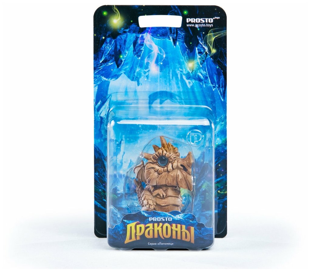 Дракончик Про с серо-коричневой имитацией кожи и синими блестящими глазами. У фигурки есть маленькие крылышки и короткий забавный хвостик. Высота фигурки 6-7 см.