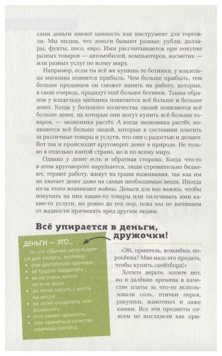 Занятная и полезная книга об основных понятиях и правилах мира финансов. Она объясняет детям на доступном языке, что такое проценты, кредиты, пластиковые карты, фондовый рынок и накопления. Она дает основы финансовой грамотности. Она учит разумно подходить к семейному бюджету и смотреть на деньги, как на капитал.