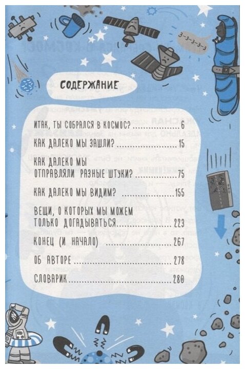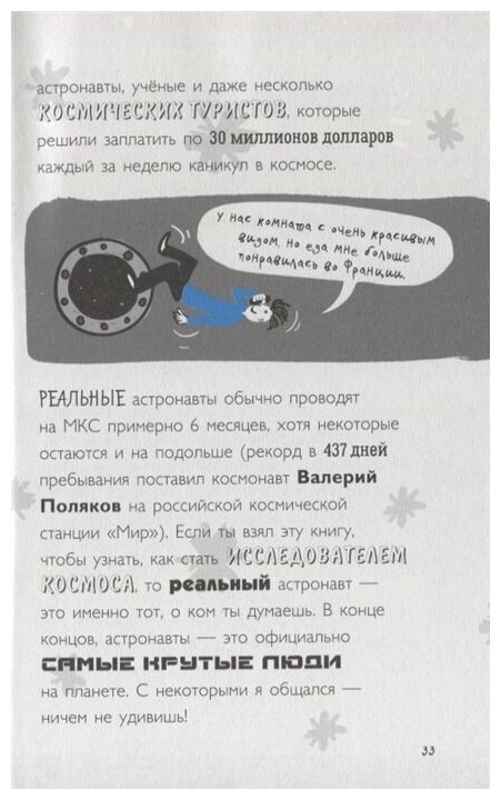 Очень интересная и увлекательная книга о космосе. В ней очень доступно и познавательно рассказано об основных космических объектах, а также о достижениях астрономии и космонавтики. Книга состоит из шести разделов, в каждом из которых описываются различны космические объекты - звёзды, планеты и галактики, и Вселенная в целом, а также методы наблюдений в астрономии. Книга сделана из белой офсетной бумаги, есть чёрно-сине-белые иллюстрации, текст и иллюстрации сделаны в формате комиксов, благодаря чему книга читается буквально на одном дыхании. Рекомендую всем, кто увлекается астрономией, особенно детям.