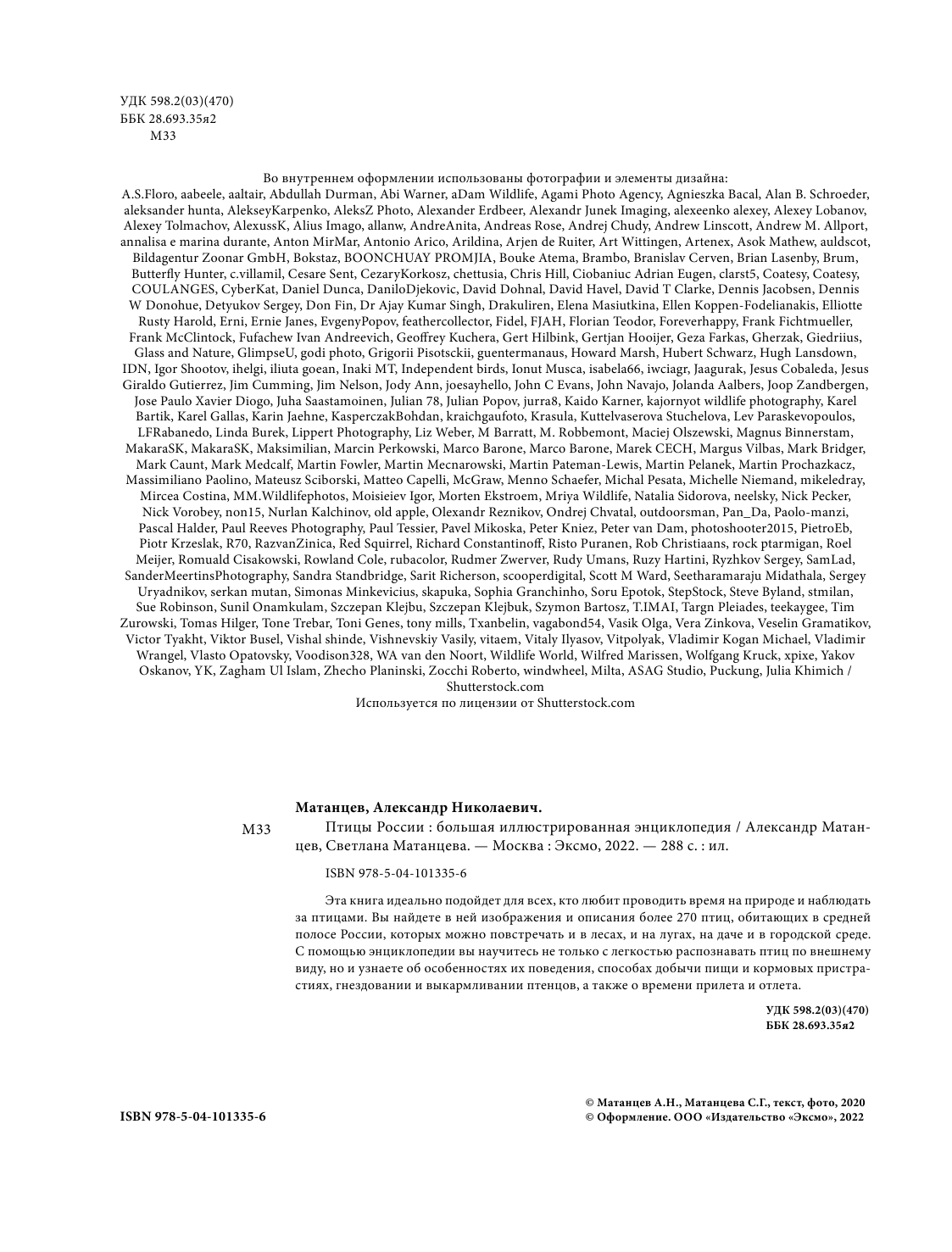 Птицы России. Большая иллюстрированная энциклопедия (Матанцева Светлана Григорьевна, Матанцев Александр Николаевич); Эксмо, 2020