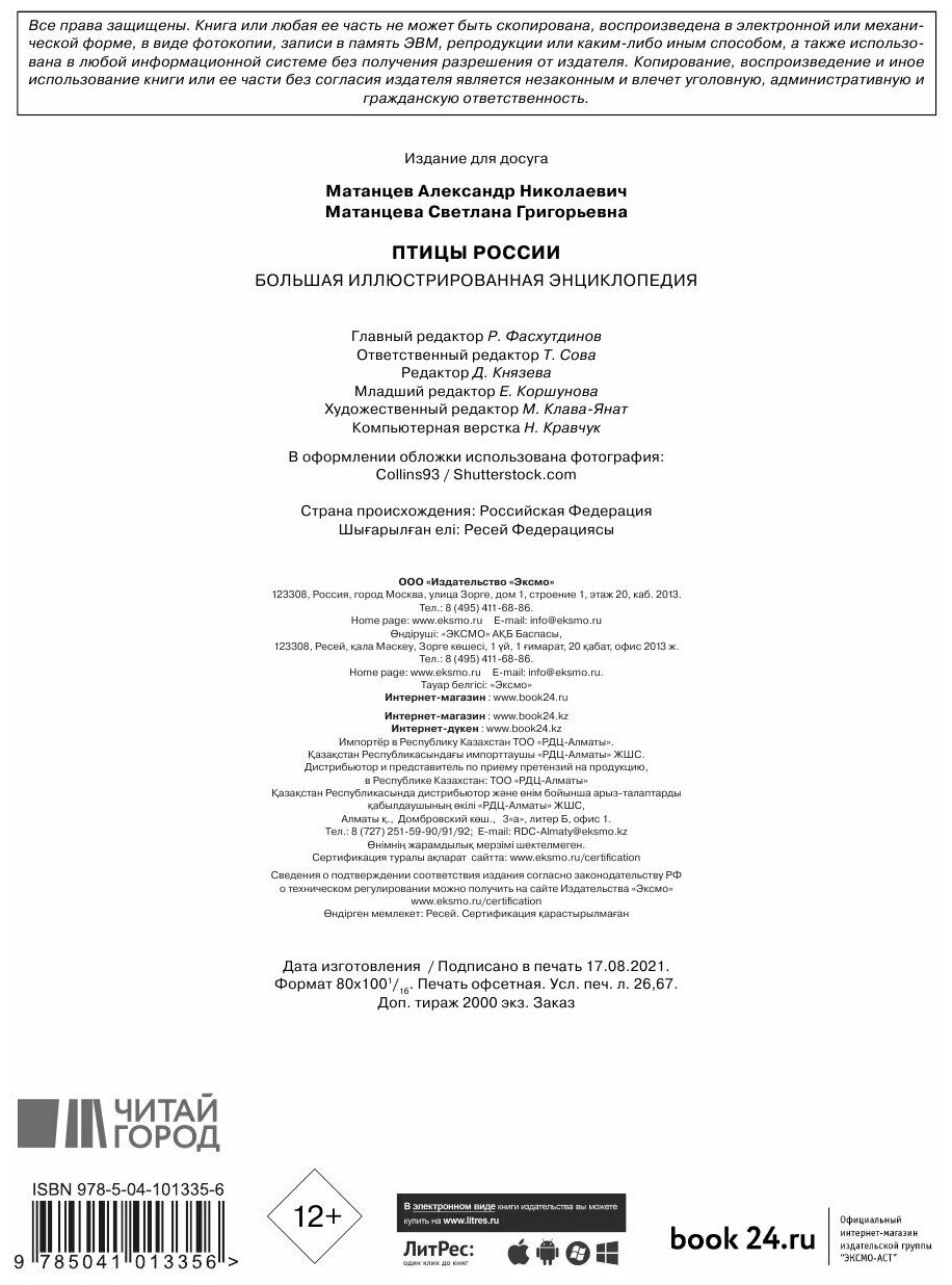 Сервис сравнения цен СкидкаГИД предлагает сравнить цены на товар «Книга: Птицы России. Большая иллюстрированная энциклопедия (Матанцева Светлана Григорьевна, Матанцев Александр Николаевич); Эксмо, 2020»