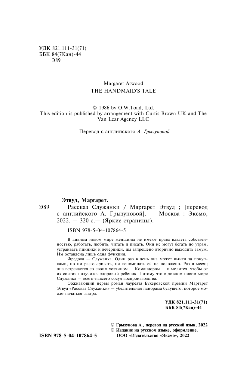 | Автор(ы) | Этвуд Маргарет Элинор |