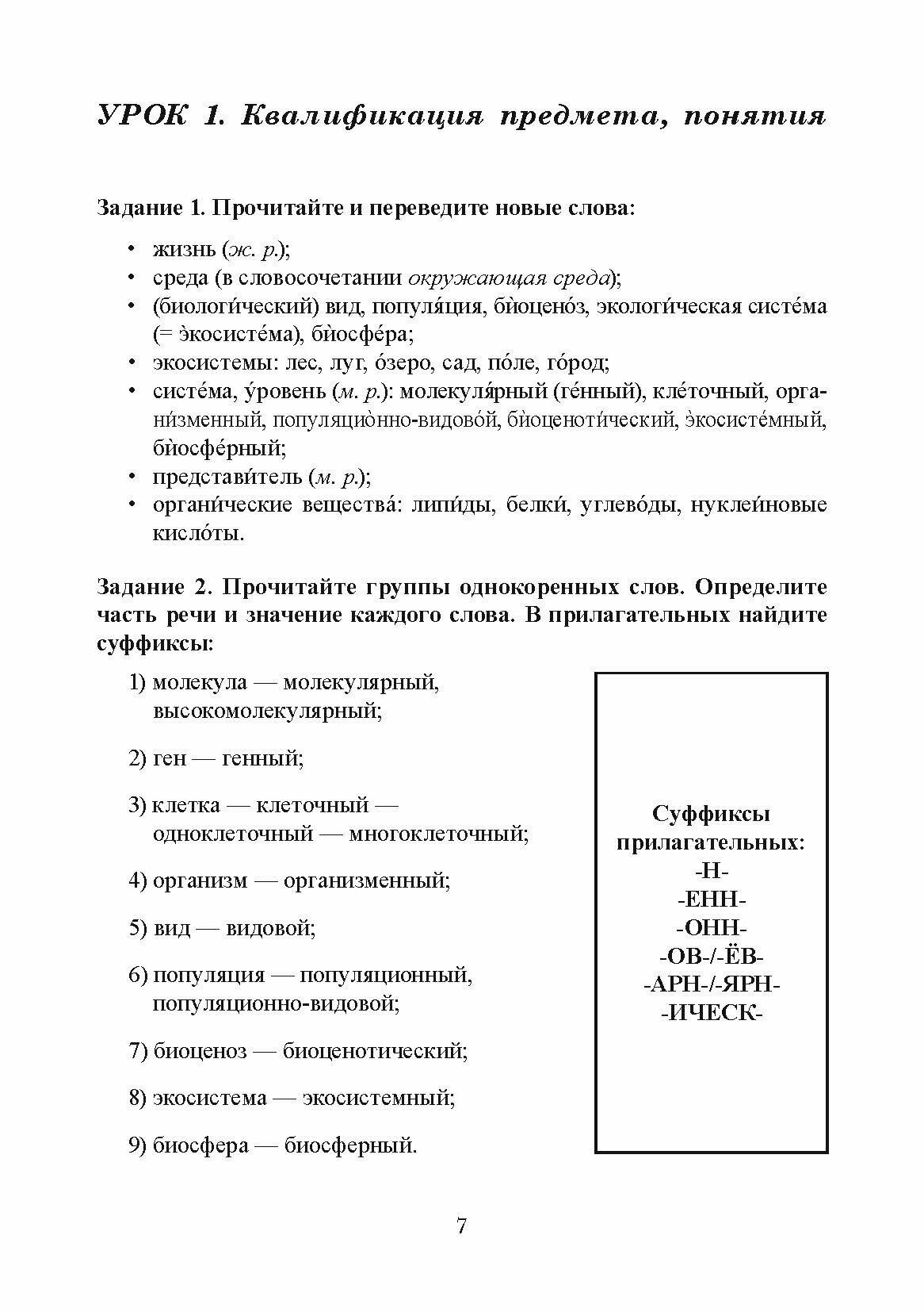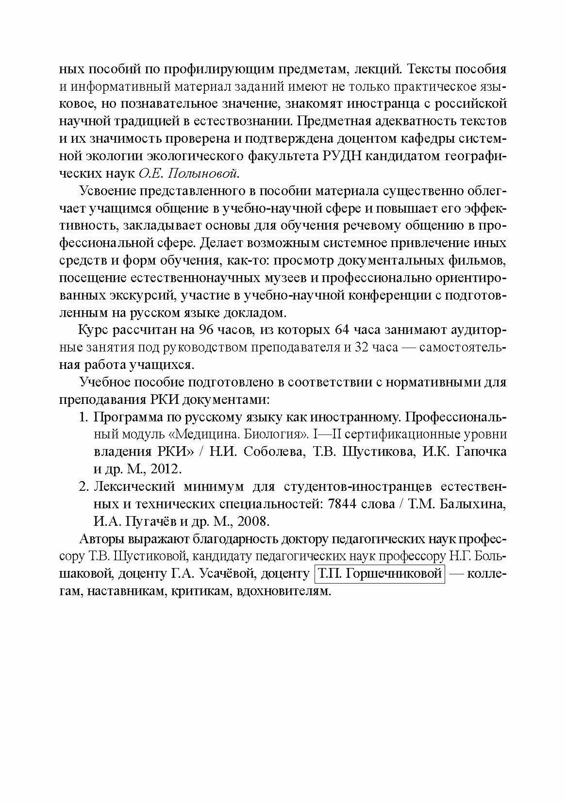 Учебное пособие предназначено для работы на предвузовском этапе обучения русскому языку иностранных студентов-экологов, достигших базового уровня владения русским языком.