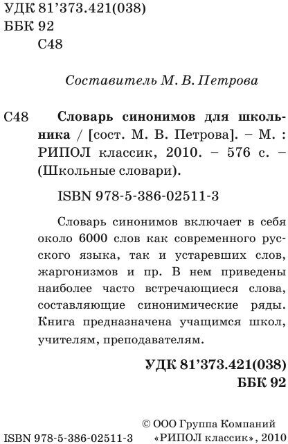 Сервис сравнения цен СкидкаГИД предлагает сравнить цены на товар «Книга: Словарь синонимов для школьников (Группа авторов); РИПОЛ Классик, 2010»