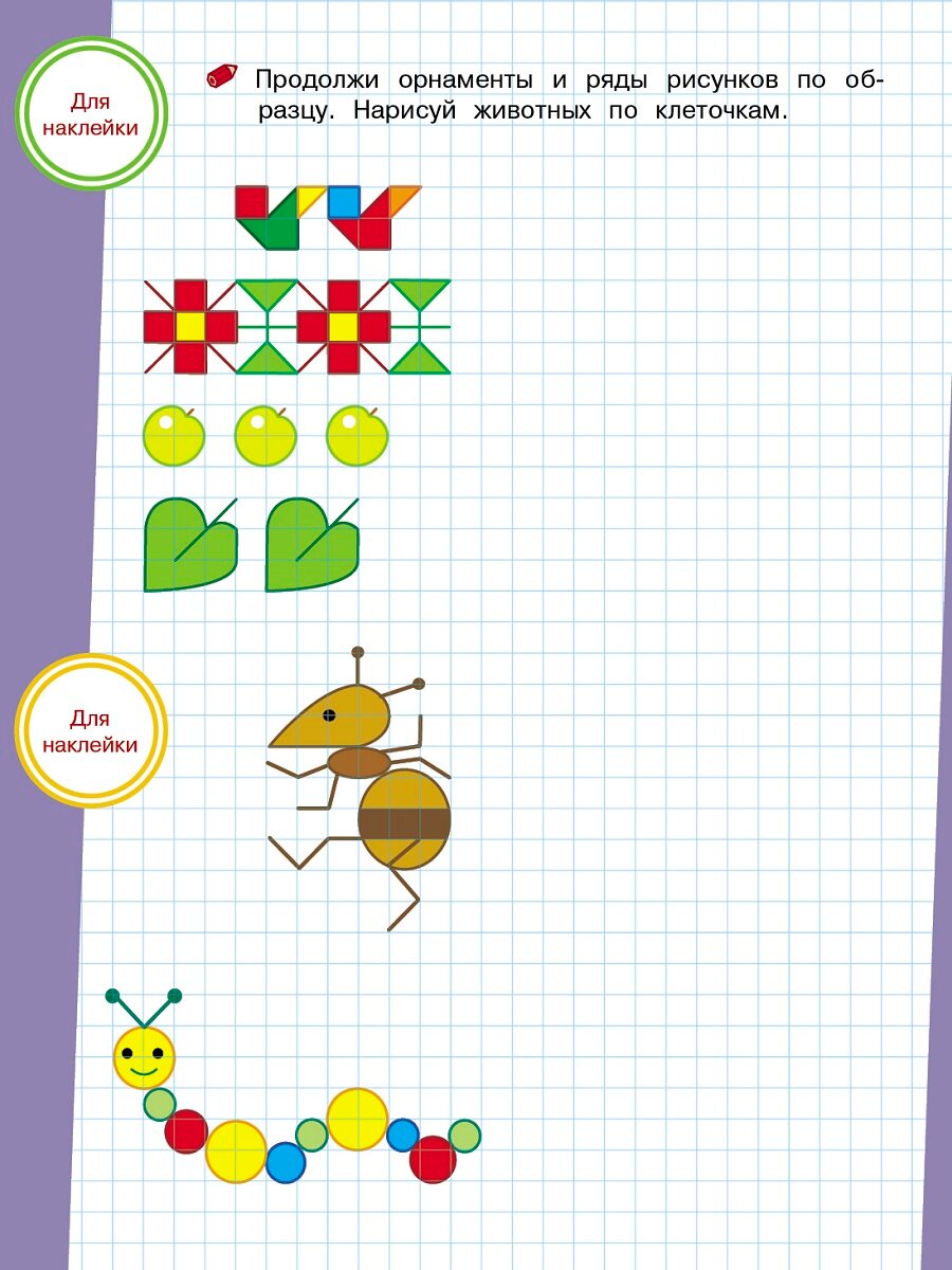 В каждом пособии есть поощрительные наклейки. Они помогут вам оценить выполненные ребёнком задания и мотивировать вашего маленького ученика для дальнейших занятий по книге.
