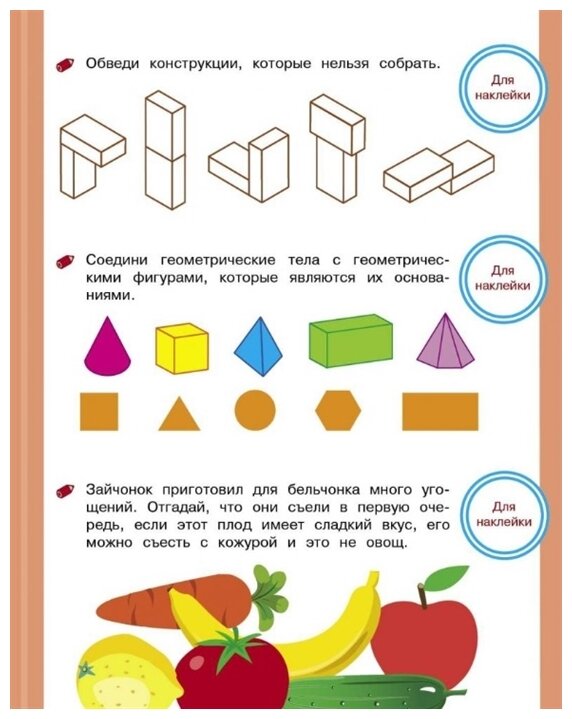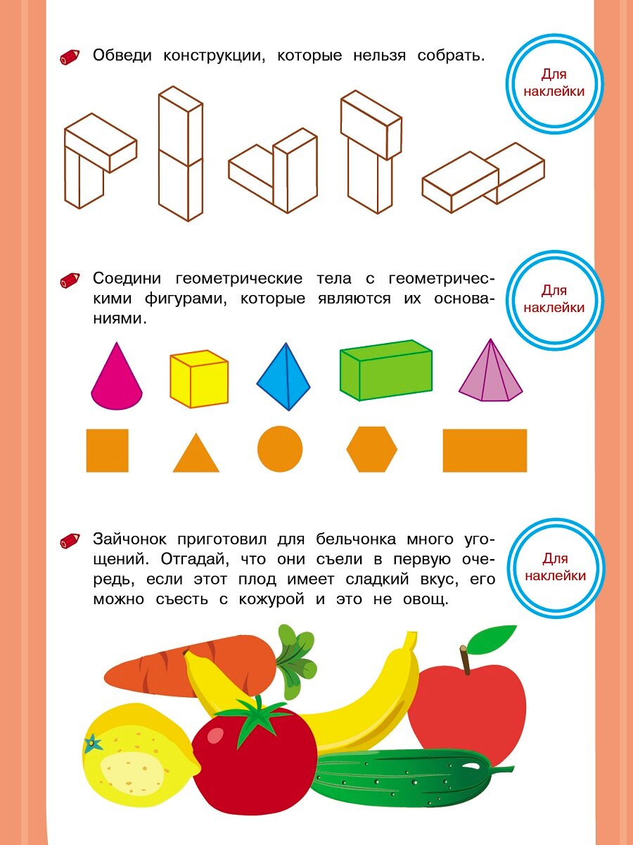 В каждом пособии есть поощрительные наклейки. Они помогут вам оценить выполненные ребёнком задания и мотивировать вашего маленького ученика для дальнейших занятий по книге.