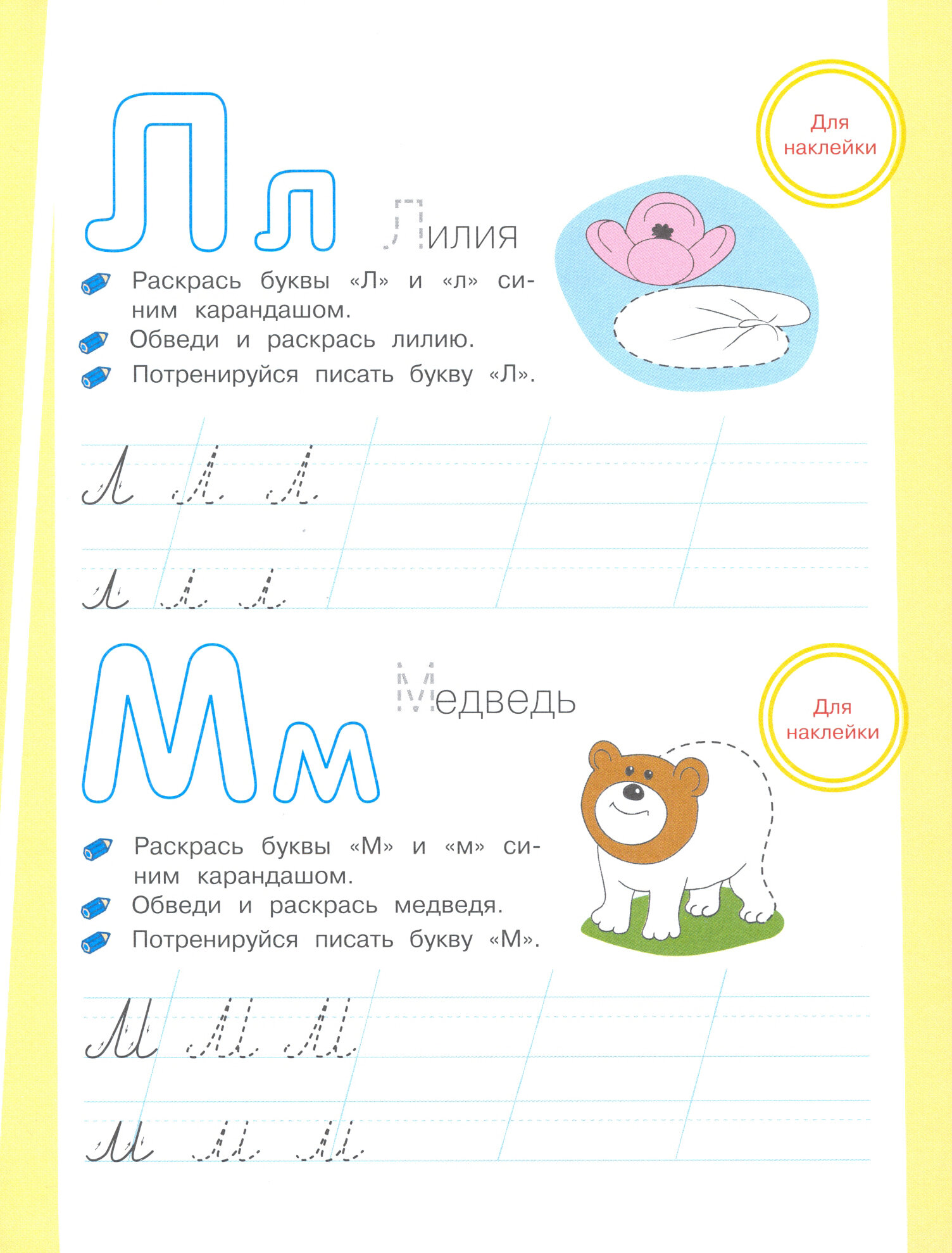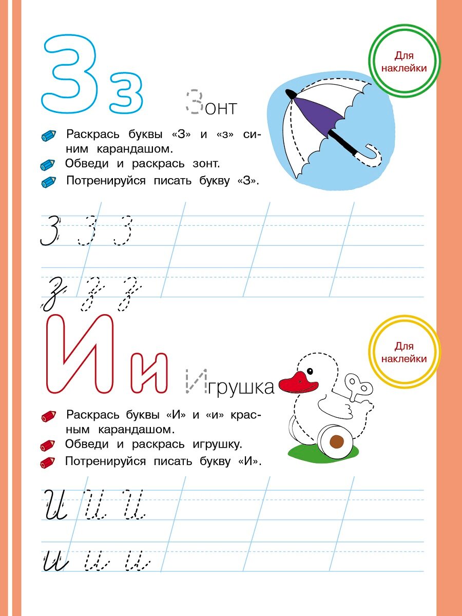 В каждом пособии есть поощрительные наклейки. Они помогут вам оценить выполненные ребёнком задания и мотивировать вашего маленького ученика для дальнейших занятий по книге.