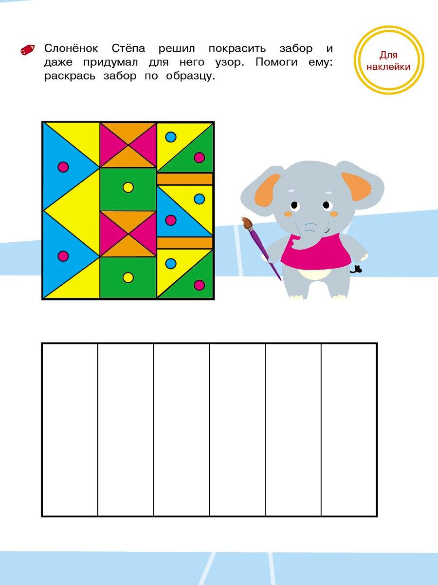 В каждом пособии есть поощрительные наклейки. Они помогут вам оценить выполненные ребёнком задания и мотивировать вашего маленького ученика для дальнейших занятий по книге.