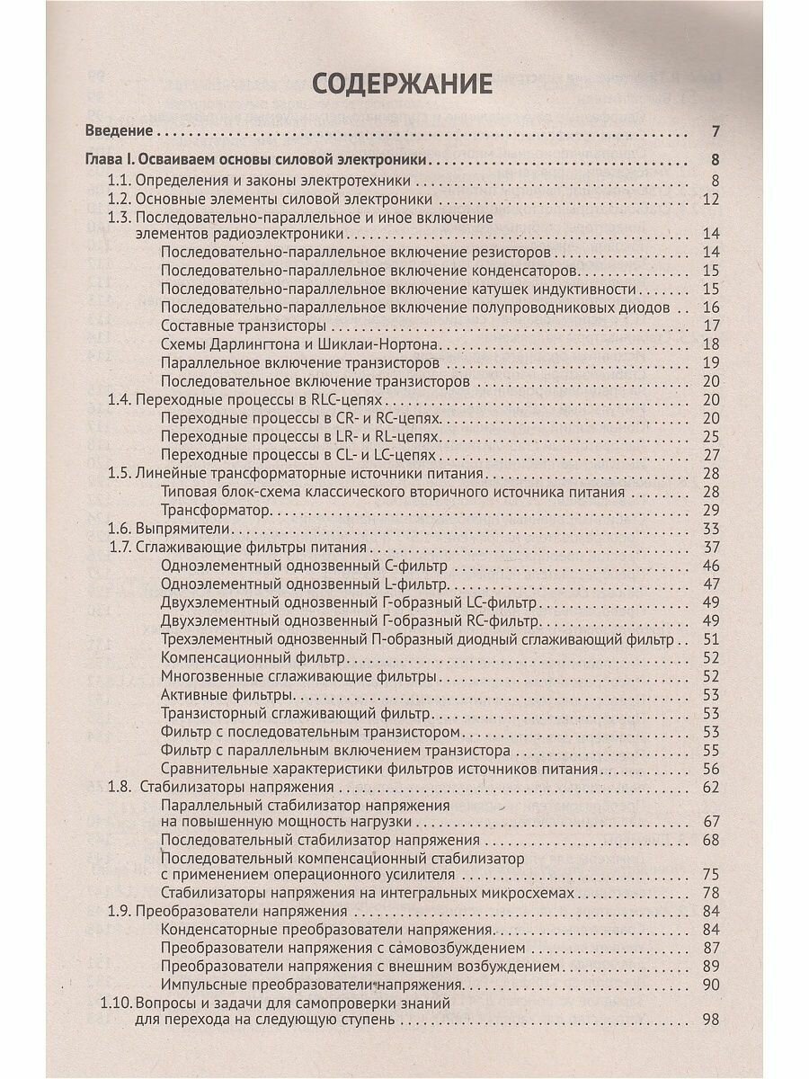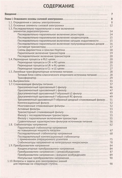 Книга позволит начинающему радиолюбителю поэтапно с паяльником в руках пройти сквозь тернии к звездам - от постижения азов силовой электроники к горным вершинам профессионального мастерства. Изложенные в книге сведения разделены на три категории уровней подготовки специалиста в области силовой электроники. После овладения очередным этапом подготовки и ответа на своеобразные экзаменационные вопросы учащийся "переводится" на следующий уровень знаний. В книге приводятся практические, теоретические и справочные сведения, достаточные для того, чтобы читатель по мере продвижения по страницам книги смог самостоятельно рассчитать, собрать и настроить понравившуюся ему электронную конструкцию. Для повышения профессионального мастерства читателя в книге приведены многочисленные проверенные практикой полезные советы, а также реальные схемы электронных устройств.
