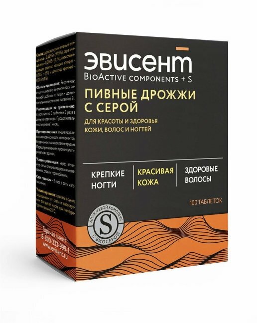 Пивные дрожжи с серой «Эвисент» незаменимы для молодости, красоты и здоровья кожи, волос и ногтей. Превосходный натуральный комплекс, который восполняет дефицит важнейших витаминов и макроэлементов в организме. Повышенное содержание серы в составе способствует оздоровлению и улучшению состояния проблемной кожи. Пивные дрожжи с серой «Эвисент» замедляют процесс старения, повышают эластичность и упругость кожи, активизируют рост волос и ногтей. Не увеличивают массу тела.