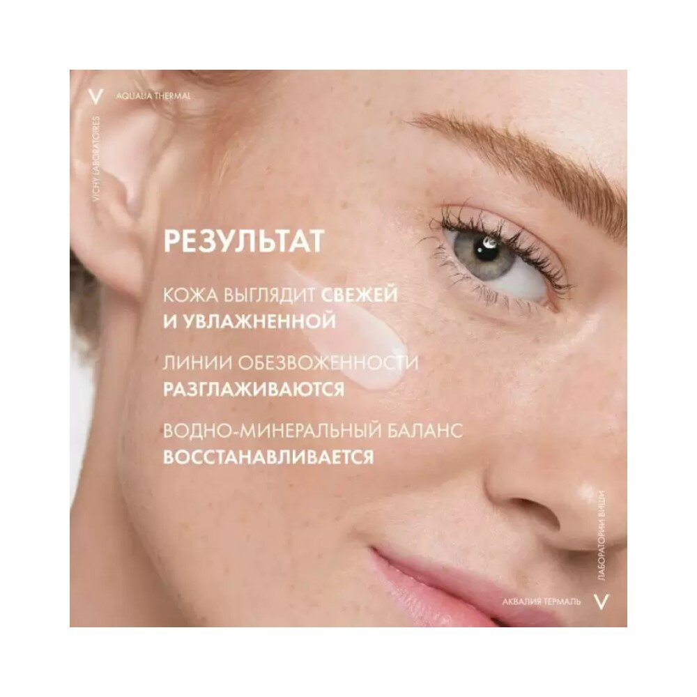 Крем помогает удерживать влагу глубоко внутри кожи до 48 часов, сокращает ее трансэпидермальную потерю, восстанавливает водно-минеральный баланс, разглаживает линии обезвоженности, возвращая лицу свежий и сияющий вид. Минерализующая термальная вода способствует восстановлению нормального pH, регенерирует и защищает эпидермис, что повышает его барьерные свойства. Растительный сахар манноза усиливает регенерацию и сцепление клеток. Гиалуроновая кислота натурального происхождения, действуя как губка, удерживает молекулы воды в 1000 раз больше собственного веса, формируя на поверхности кожи защитную пленку, делая ее гладкой и увлажненной.