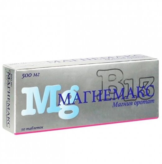| Состав | магния оротата дигидрат 500 мг, лактозы моногидрат, крахмал кукурузный, целлюлоза микрокристаллическая, повидон К - 30, кроскармеллозанатрия, кремния диоксид коллоидный (аэросил), натрия цикламат, тальк, магния стеарат |