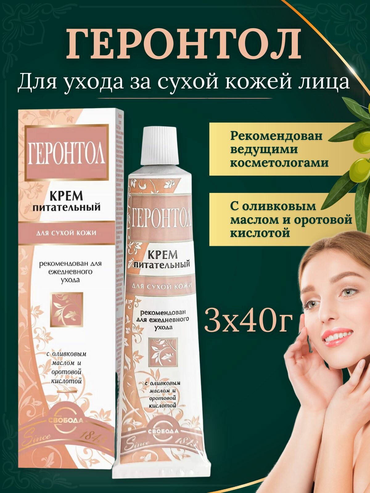 Геронтол крем питательный для сухой увядающей кожи с оливковым масло и микроэлементами 40 г Свобода АО (751455)