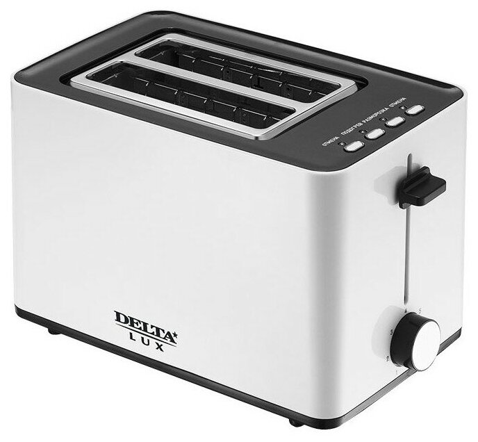 Тостер DELTA LUX – быстрое приготовление любимых тостов! Индивидуальная настройка температурного режима для приготовления вкусных тостов позволит выбрать одну из 7 степеней обжаривания. Механизм автоматического центрирования размещает и тонкие, и нарезанные вручную толстые ломтики прямо по центру, фиксируя их для равномерного обжаривания. Благодаря решетке для гренок вы за несколько минут сможете приготовить вкусные гренки.