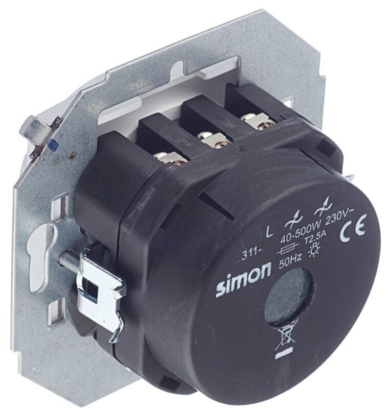 Светорегулятор роторный электронный проходной Simon Simon 15 1591311-033 (20-500 Вт, под рамку, скрытая установка, алюминий)