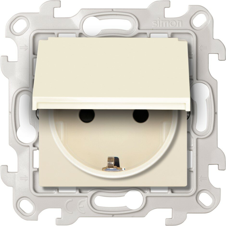 Розетка одиночная Simon 24 Harmonie Standard Hook 2450448-031 (16 А, з/к, шторки, крышка, под рамку, скрытая установка, слоновая кость)