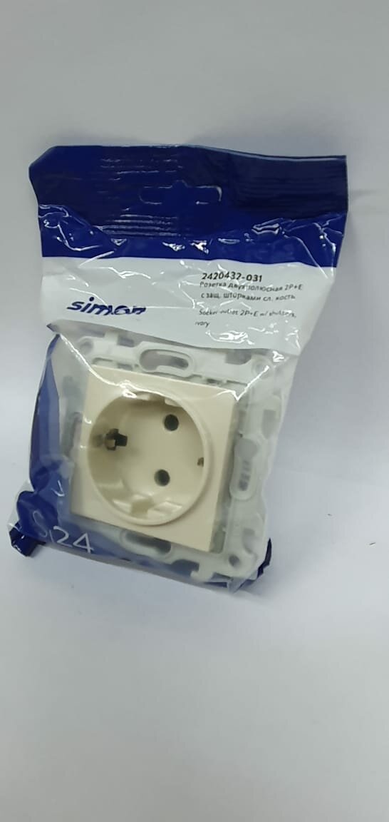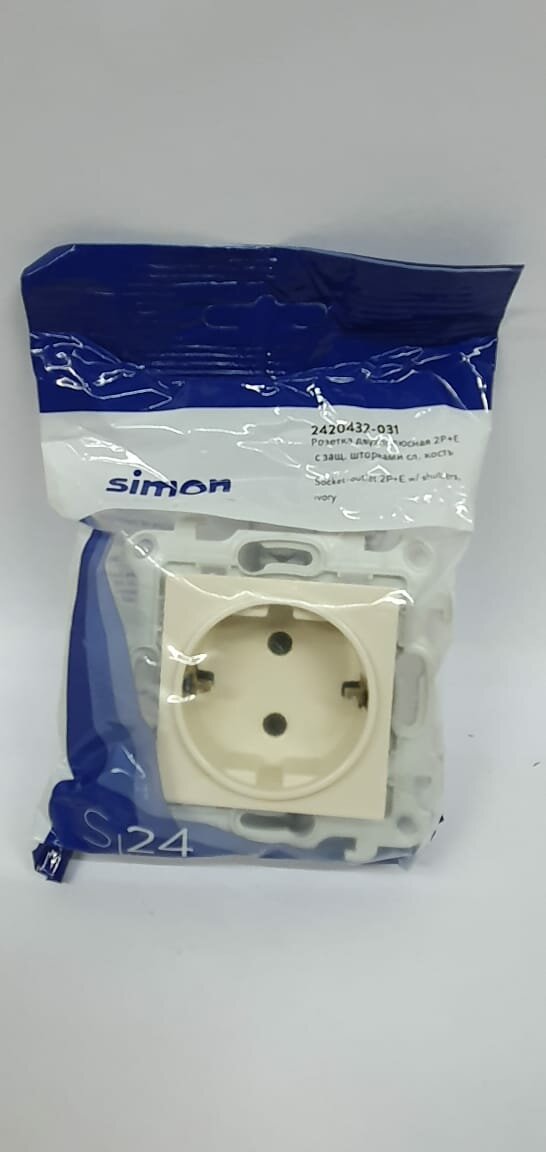 Розетка одиночная Simon 24 Harmonie Push&Go; 2420432-031 (16 А, з/к, шторки, под рамку, скрытая установка, слоновая кость)
