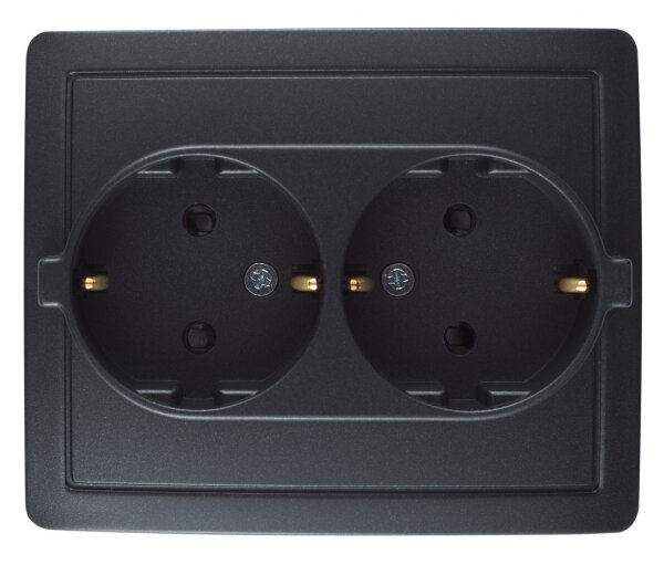 Розетка двойная Simon Simon 15 1590451-038 (16 А, з/к, шторки, в сборе, скрытая установка, графит)