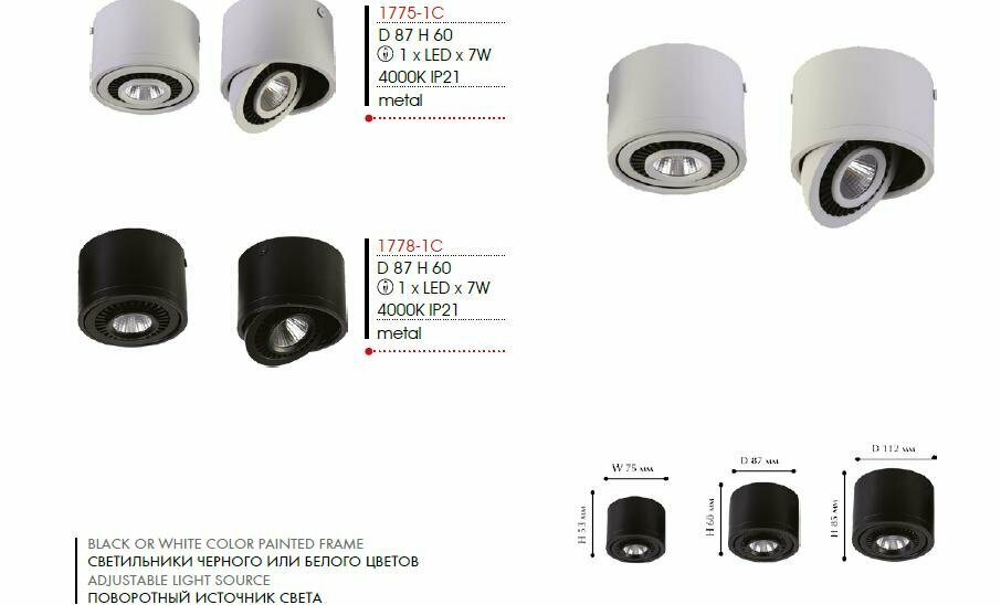 Точечный светодиодный светильник Reflector 1778-1C - продукт известной компании Favourite (Германия). Имеет максимальную мощность 7 Вт, освещает площадь до 3 кв. м. Отлично подойдет для таких мест, как гостиная, прихожая и коридор, спальня, кабинет, кухня, экспозиция. Впишется в интерьеры следующих стилей: лофт, техно.