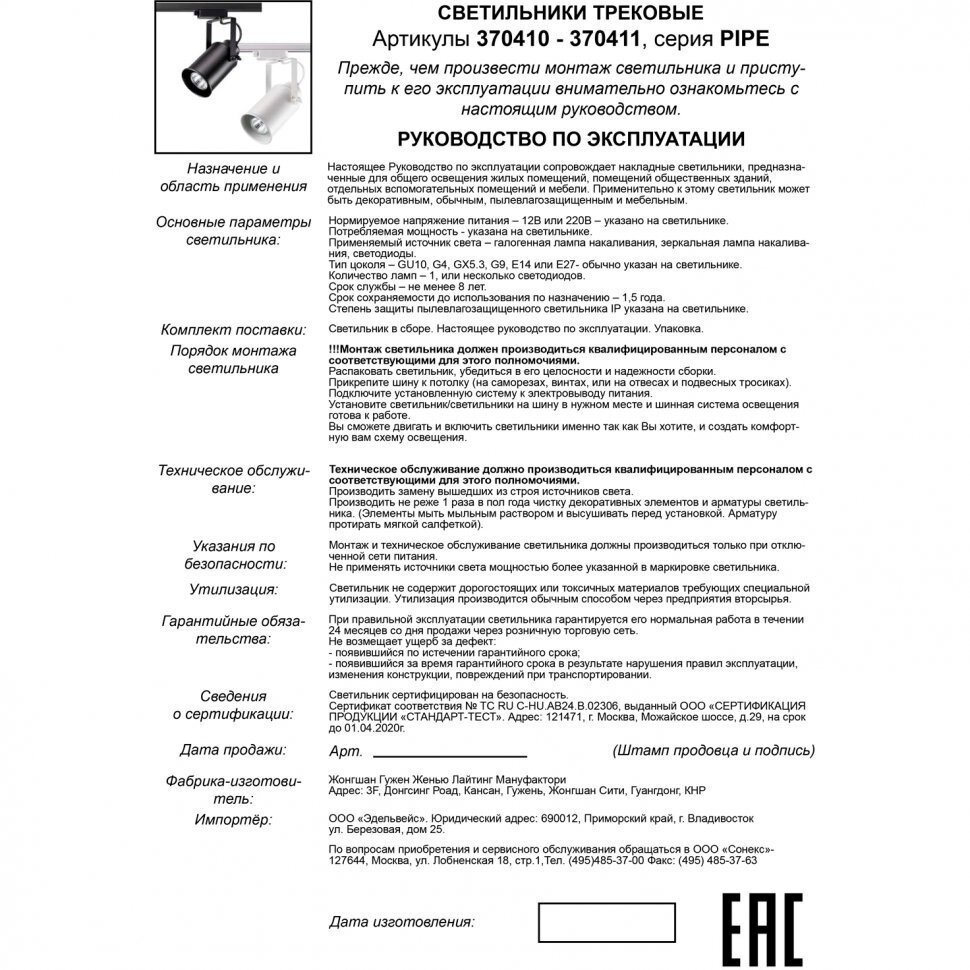 Трековый светильник Pipe 370410 - продукт известной компании Novotech (Венгрия). Имеет максимальную мощность 50 Вт, освещает площадь до 4 кв. м. Отлично подойдет для таких мест, как гостиная, кафе, кухня, кабинет, офис, экспозиция, магазин. Впишется в интерьеры следующих стилей: техно.