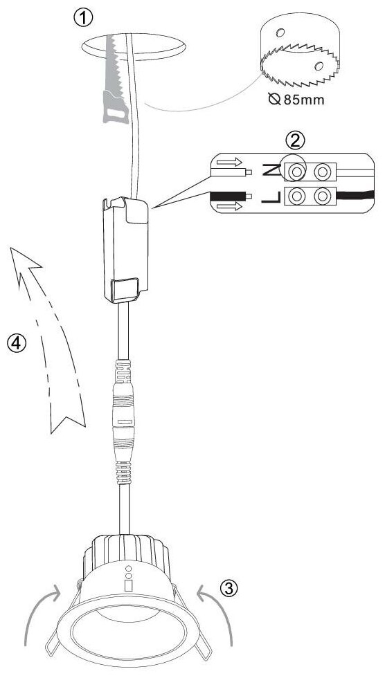 | Диаметр монтажного отверстия, мм | 85 |