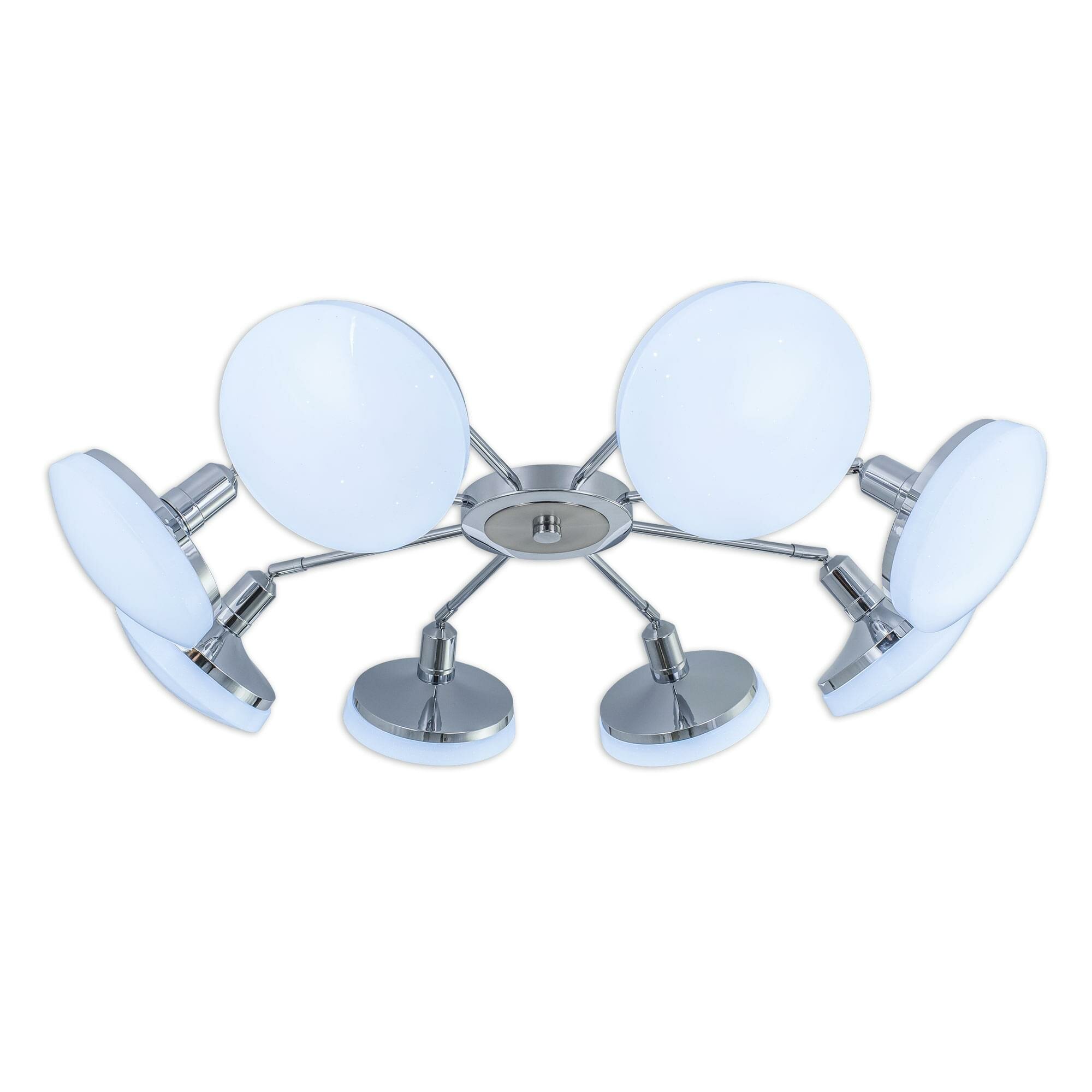 Люстра потолочная Светодиодная Citilux Тамбо CL716281Nz. Недорогая и функциональная серия светильников «Тамбо» подходит для любого типа потолков включая натяжные. Вся серия оснащена встроенным диммером, позволяющим менять степень яркости при помощи обычного клавишного выключателя. Также все светильники из серии представлены в двух вариантах цветовой температуры, первый - 4100К для любителей холодного, нейтрального света и второй - 3000К для ценителей тёплого, мягкого света. Коллекция создана с учётом возможности освещения практически любых по площади комнат. «Тамбо» включает в себя потолочные и подвесные одинарные светильники, которые эффектно подчеркнут достоинства вашей прихожей, а так же модели с тремя плафонами, идеально подходящие для кухни. Для спален и детских комнат, учитывая возможность регулировки степени яркости, оптимальным решением будет люстра на четыре, пять или шесть рожков и настенные бра. Для гостиной комнаты хорошо подойдет потолочная модель люстры, имеющая 8 рожков. Если потолки в гостиной высокие, то идеальным вариантом будет подвесная модель с регулируемой высотой в виде шара - венец серии «Тамбо» с 11 рассеивателями, которая несомненно станет оригинальным украшением вашего дома. В рамках коллекции также выпущены отдельные лампы-светильники с цоколем Е27 под стандартные классические патроны, которые можно использовать как обычные лампы или как сменные рассеиватели для любых светильников этой серии.