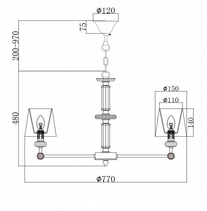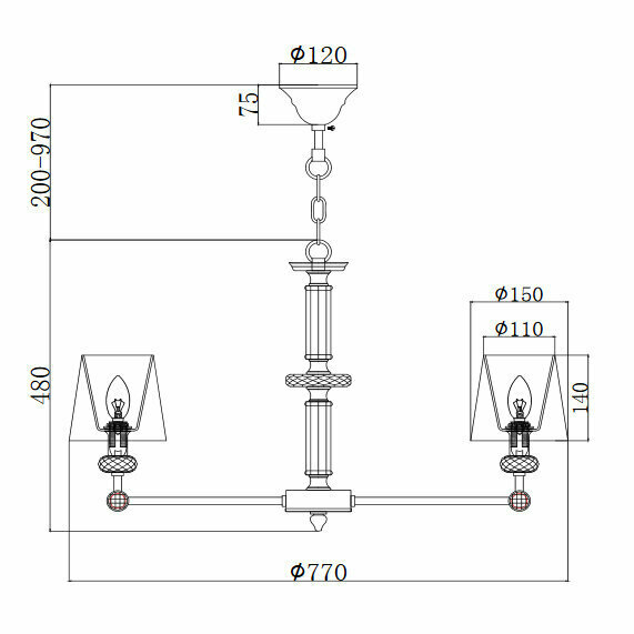 Подвесная люстра Riverside MOD018PL-08CH - продукт известной компании Maytoni (Германия). Имеет максимальную мощность 320 Вт, освещает площадь до 16 кв. м. Отлично подойдет для таких мест, как гостиная, спальня, кухня, кабинет. Впишется в интерьеры следующих стилей: классический.