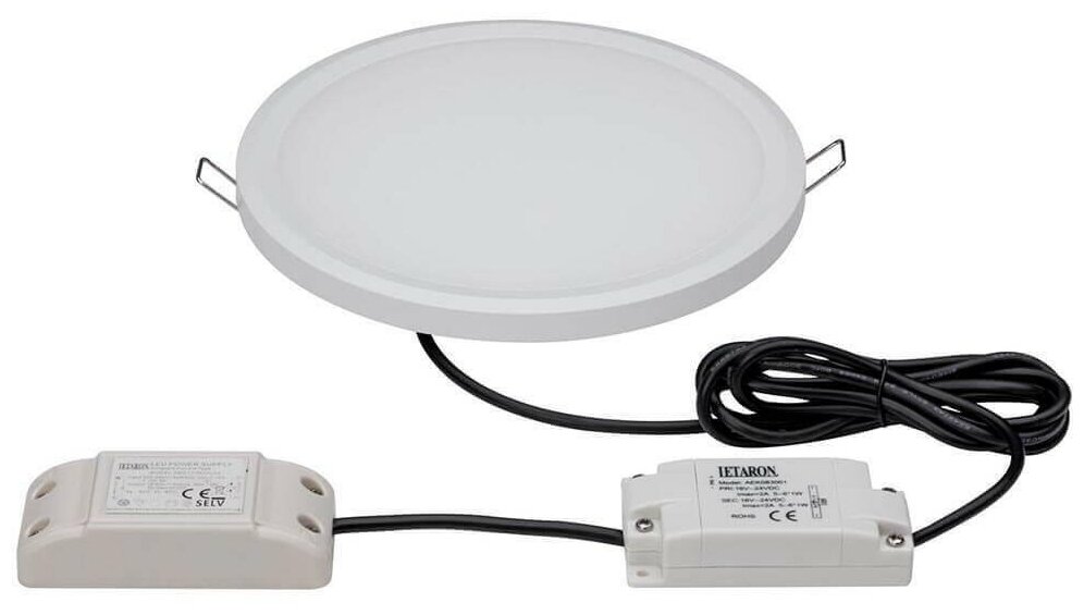 Встраиваемый светильник - продукт известной компании Paulmann (Германия). Имеет максимальную мощность 9 Вт. Отлично подойдет для таких мест, как ванная. Впишется в интерьеры следующих стилей: хай-тек.