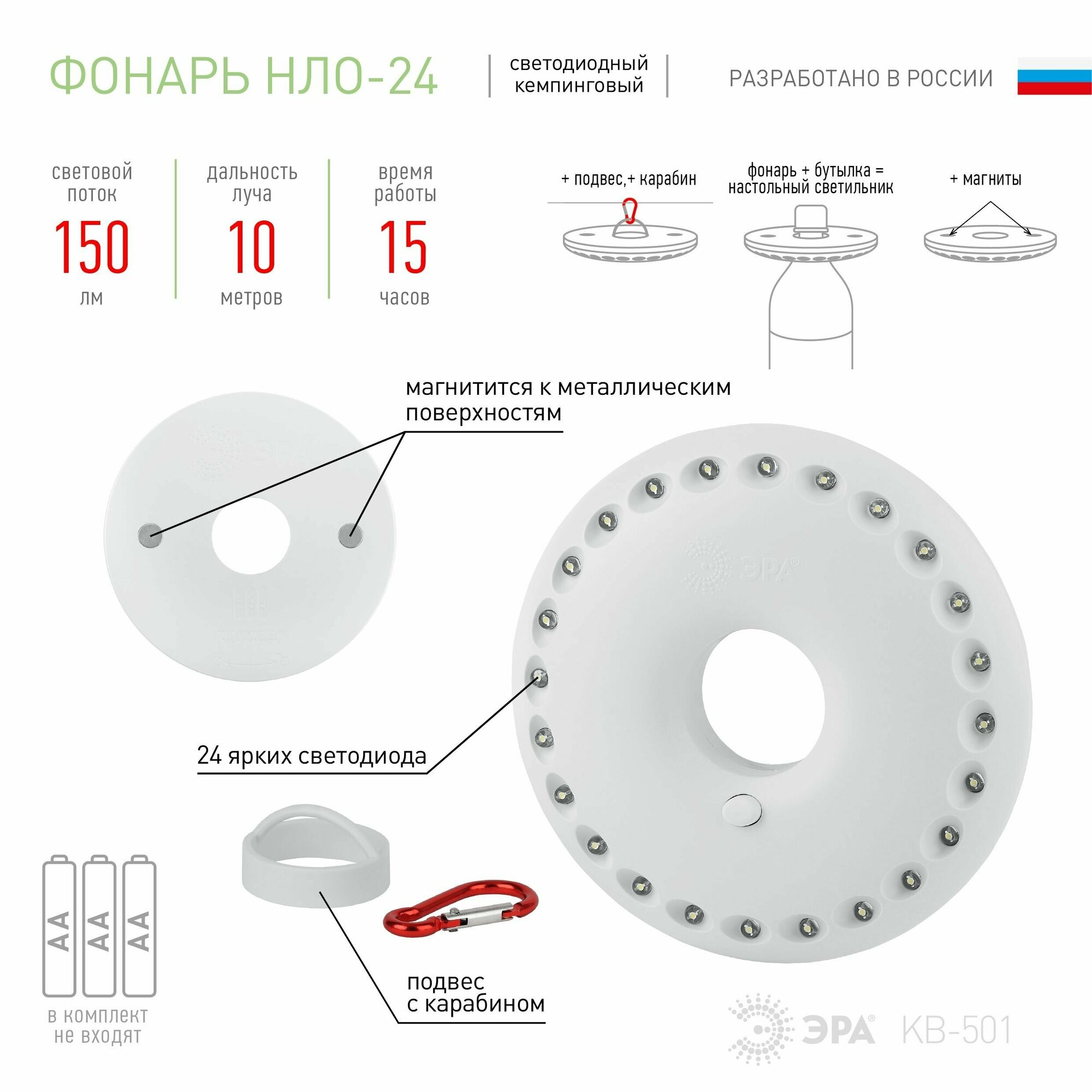 Фонарь светодиодный кемпинговый ЭРА НЛО-24 KB-501