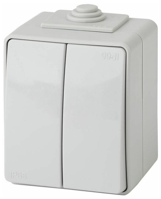 Выключатель влагозащищённый 2-клавишный серии Эра Эксперт накладной IP65 цвет серый 11-1604-03. Номинальные характеристики 10А 250В . Выполнен из качественного поликарбоната, оснащён уникальными винтовыми клеммами эксперт для максимально качественного зажима кабеля в механизме.