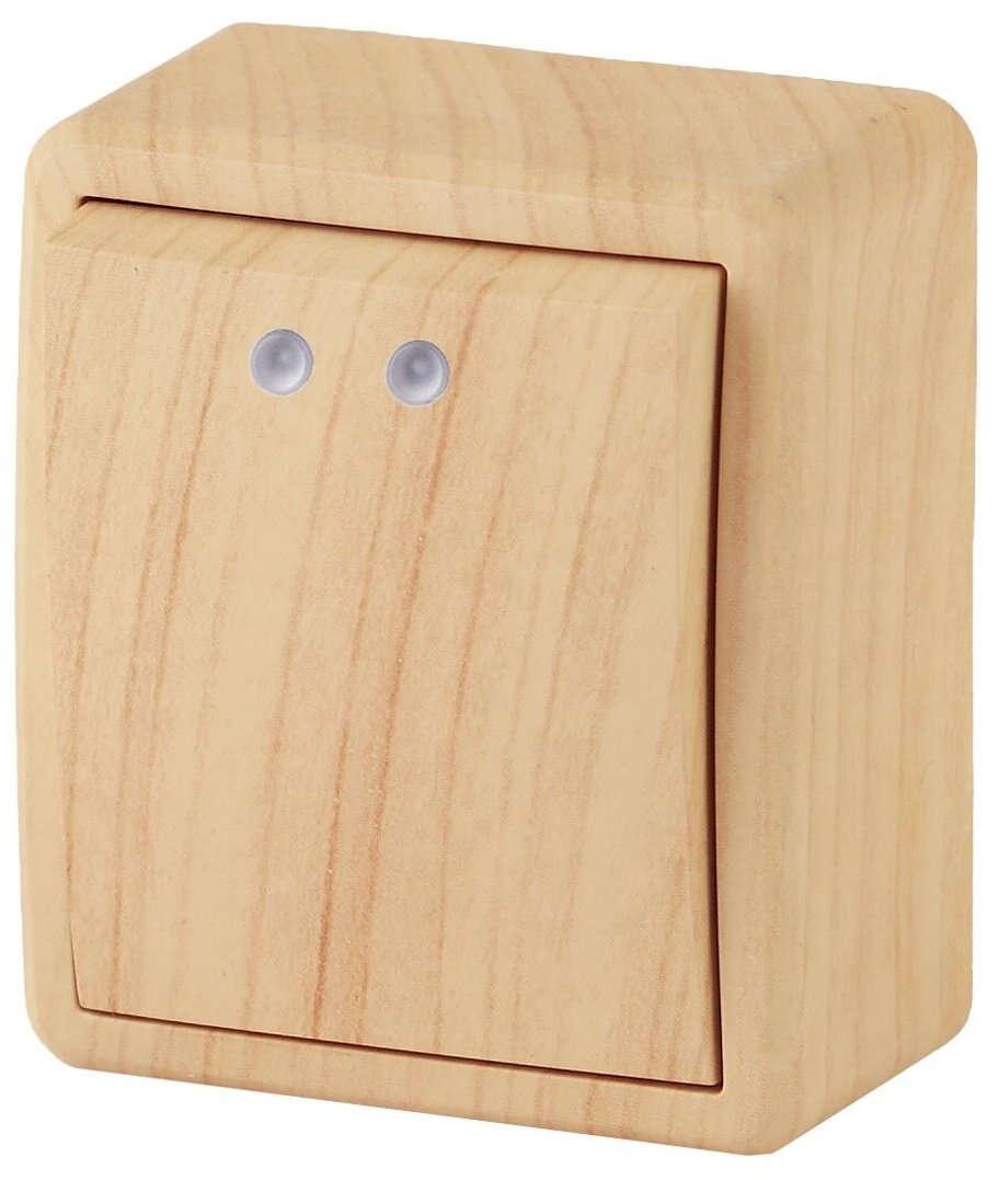 Выключатель 1-клавишный с подсветкой серии Эра Эксперт открытой установки цвет сосна 11-1202-11. Номинальные характеристики 10А 250В . Выключатель выполнен из качественного поликарбоната, оснащён уникальными винтовыми клеммами эксперт для максимально качественного зажима кабеля в механизме.
