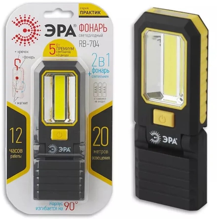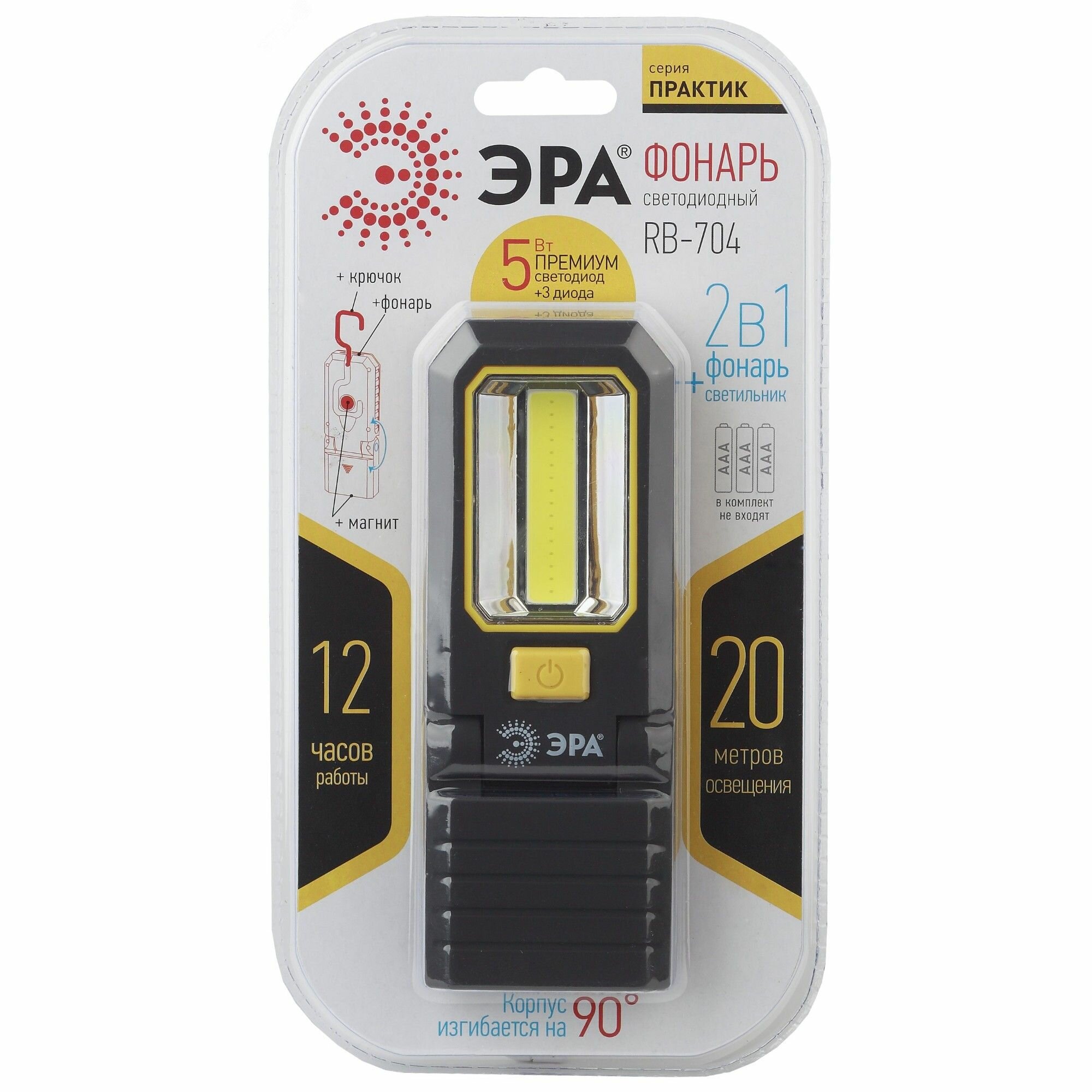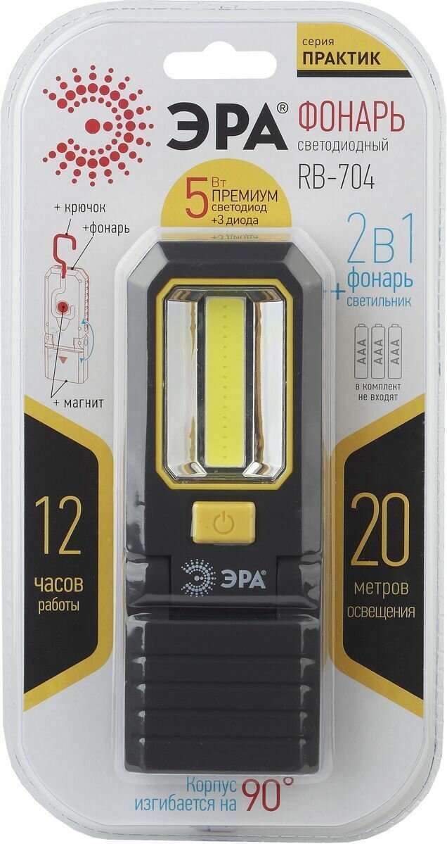 Туризм Эра Фонарь ЭРА можно использовать и как светильник: его корпус изгибается на 90 градусов, превращая ручку в удобную подставку. На задней поверхности корпуса есть большой крючок, за который устройство можно подвесить на гвозде или ветке дерева, и магнит, с помощью которого получится закрепить прибор на металле.