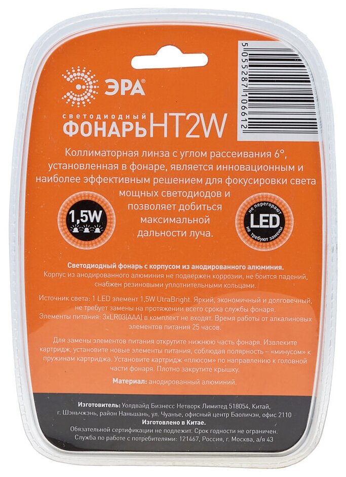 Ручной светодиодный фонарь ЭРА (HT2W)