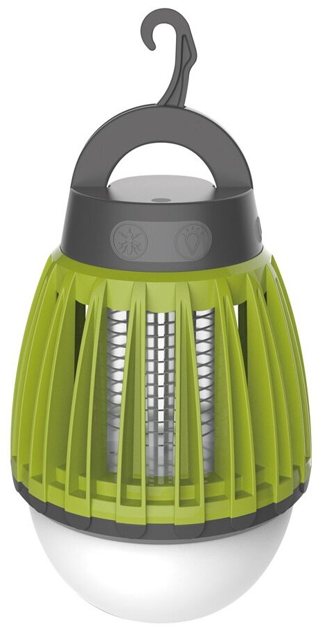 Лампа имеет два типа встроенных светодиодов: белые и ультрафиолетовые. Первые не оказывают никакого воздействия на насекомых и выполняют функцию уличной подсветки. А вот вторые привлекают летающих насекомых, которые, подлетев к прибору, затем соприкасаются с решёткой и получают удар током.