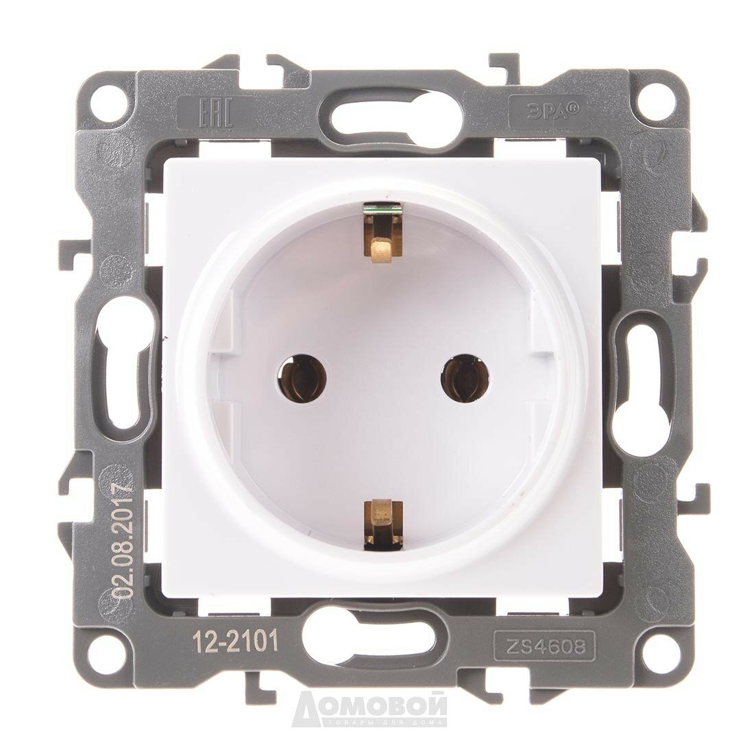 Розетка встраиваемая Эра 12-2103-01 с заземлением со шторками с крышкой цвет белый (12-2101-01)
