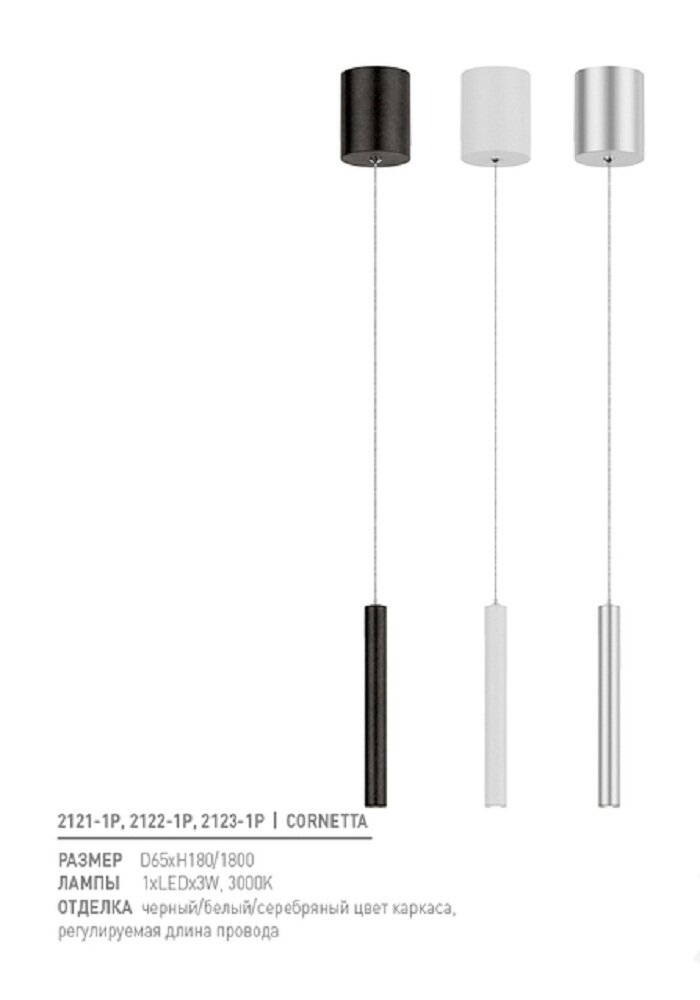 Подвесной светодиодный светильник Cornetta 2121-1P - продукт известной компании Favourite (Германия). Имеет максимальную мощность 3 Вт, освещает площадь до 1 кв. м. Отлично подойдет для таких мест, как гостиная, прихожая и коридор, кафе, кухня, офис, над кухонным островом. Впишется в интерьеры следующих стилей: модерн.