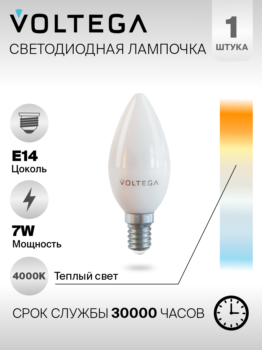 На сегодняшний день товар «Лампа светодиодная Voltega E14 7W 4000К матовая VG2-C37E14cold7W (7049)» можно купить с кешбеком в 1 магазине: Яндекс.Маркет